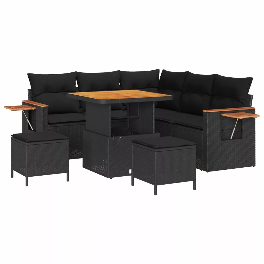 Kerti Kanapé Szett párnával 9 pcs Fekete polirattan