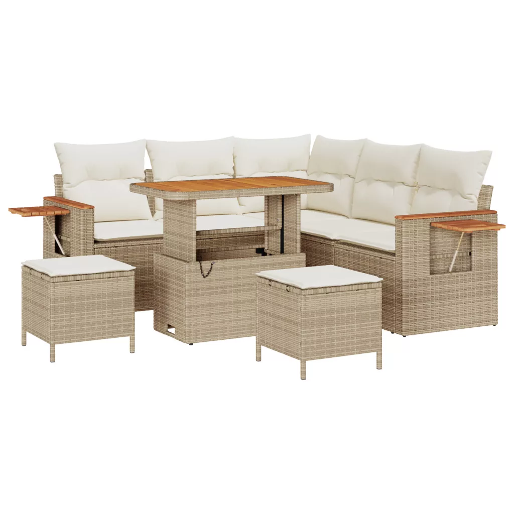 8 részes kerti kanapé szett párnákkal bézs polirattan akác