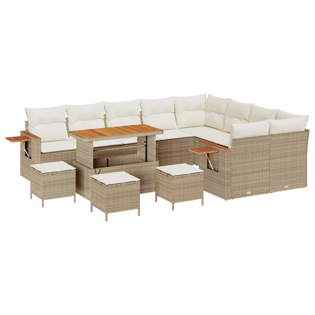 13 Részes Kerti Kanapé Szett Párnákkal Bézs Polirattan Akác