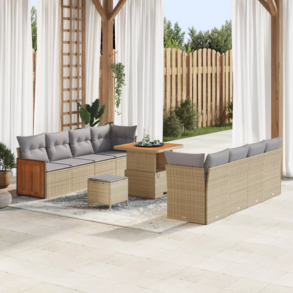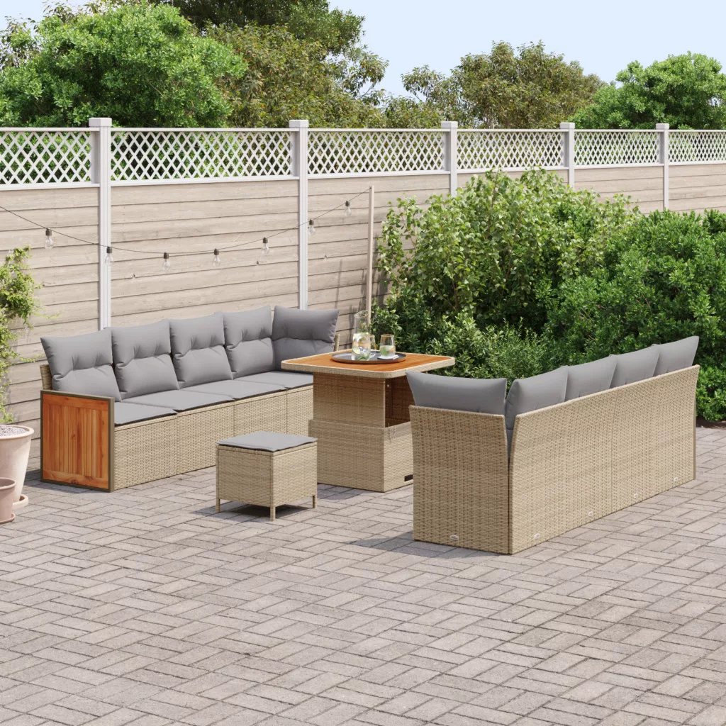 11 darabos kerti kanapé szett párnákkal bézs poli rattan akáccal