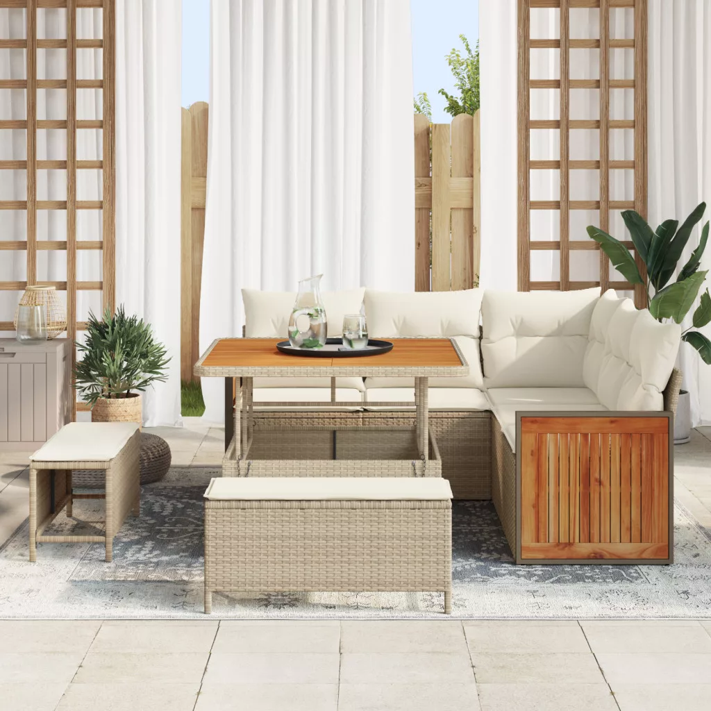 8 részes kerti kanapé szett párnákkal bézs poli rattan akácia