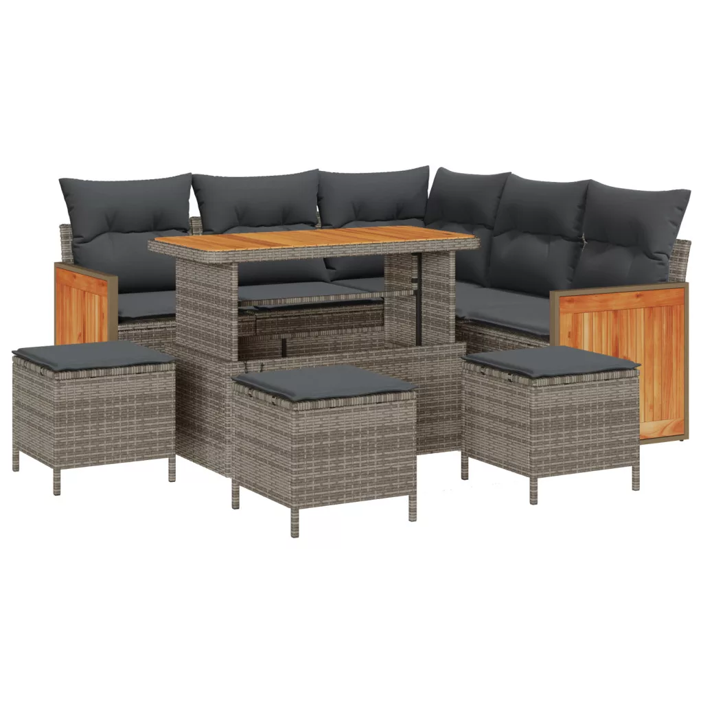 9 darabos kerti kanapé szett párnákkal szürke polirattan akác