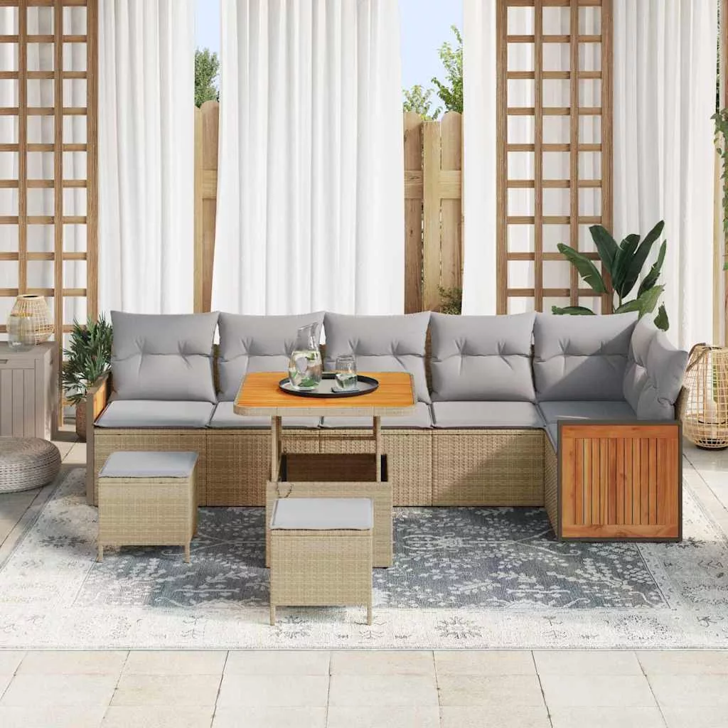 Kerti Kanapé Szett 9 pcs Beige és világosszürke polirattan