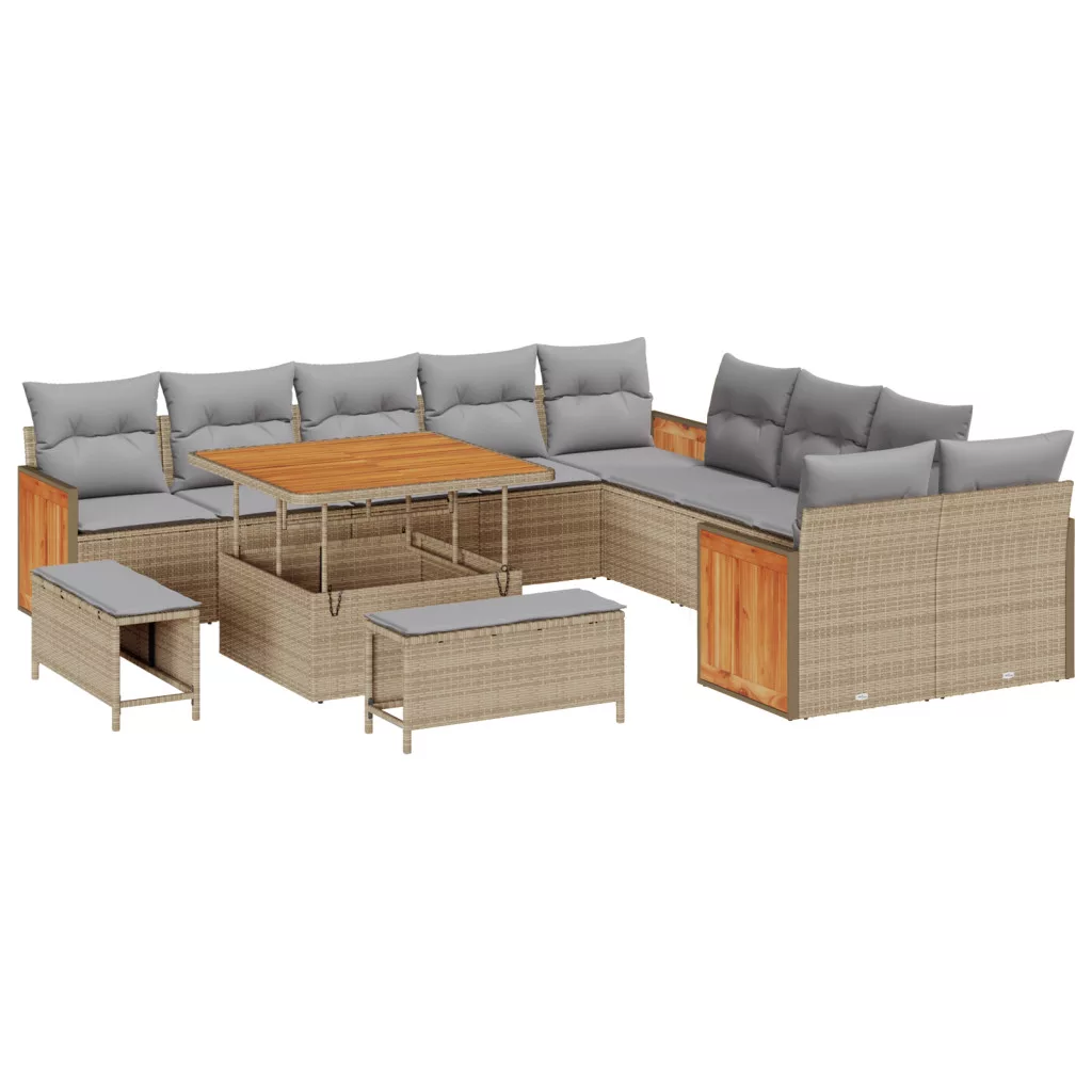 13 darabos kerti kanapé szett párnákkal Bézs Poli Rattan Akácia