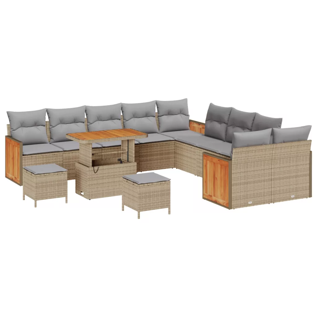 13 darabos kerti kanapé szett párnákkal bézs polirattan akáciával