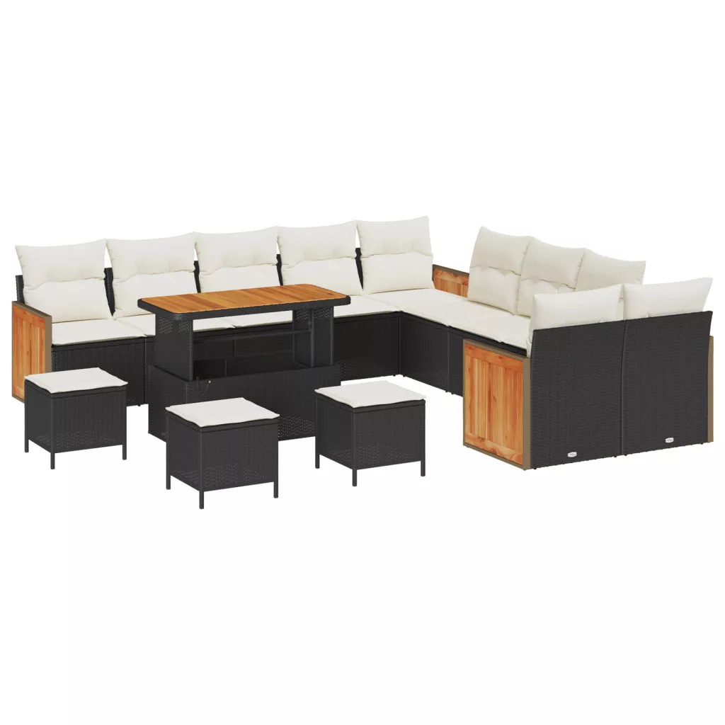 14 darabos kerti kanapészett párnákkal Fekete Poli Rattan Akácia