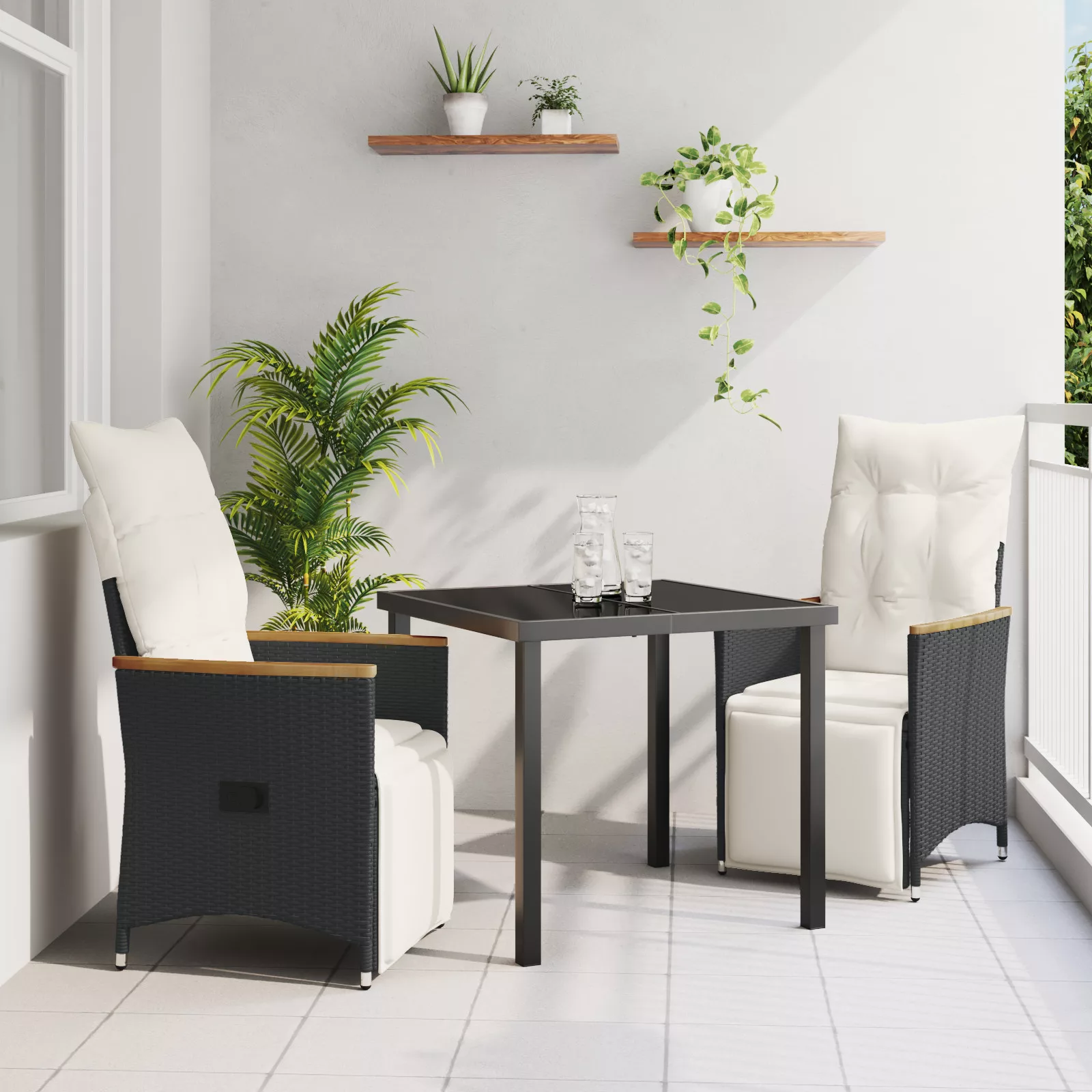 Kiszállított tartalom: 1 x Kerti asztal, 2 x Kerti szék, 2 x Hátpárna, 2 x Ülpárna