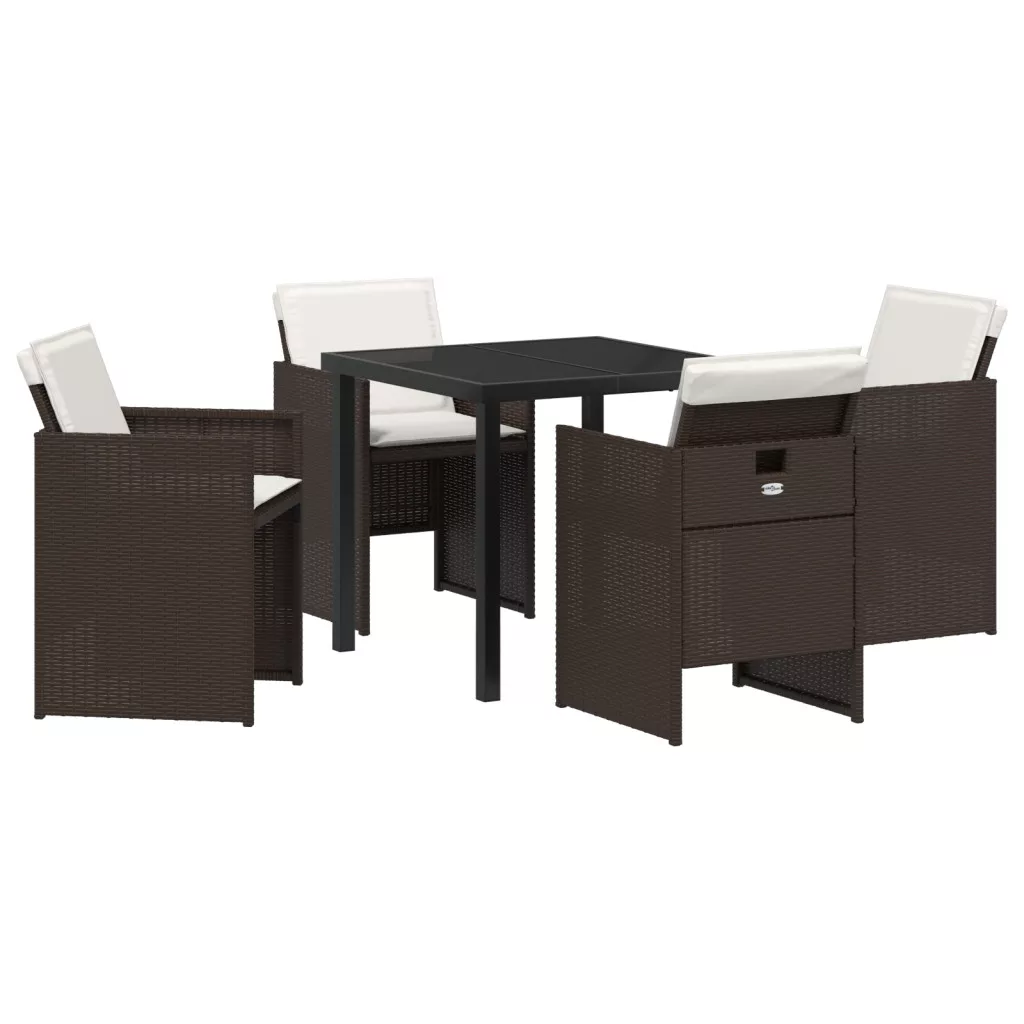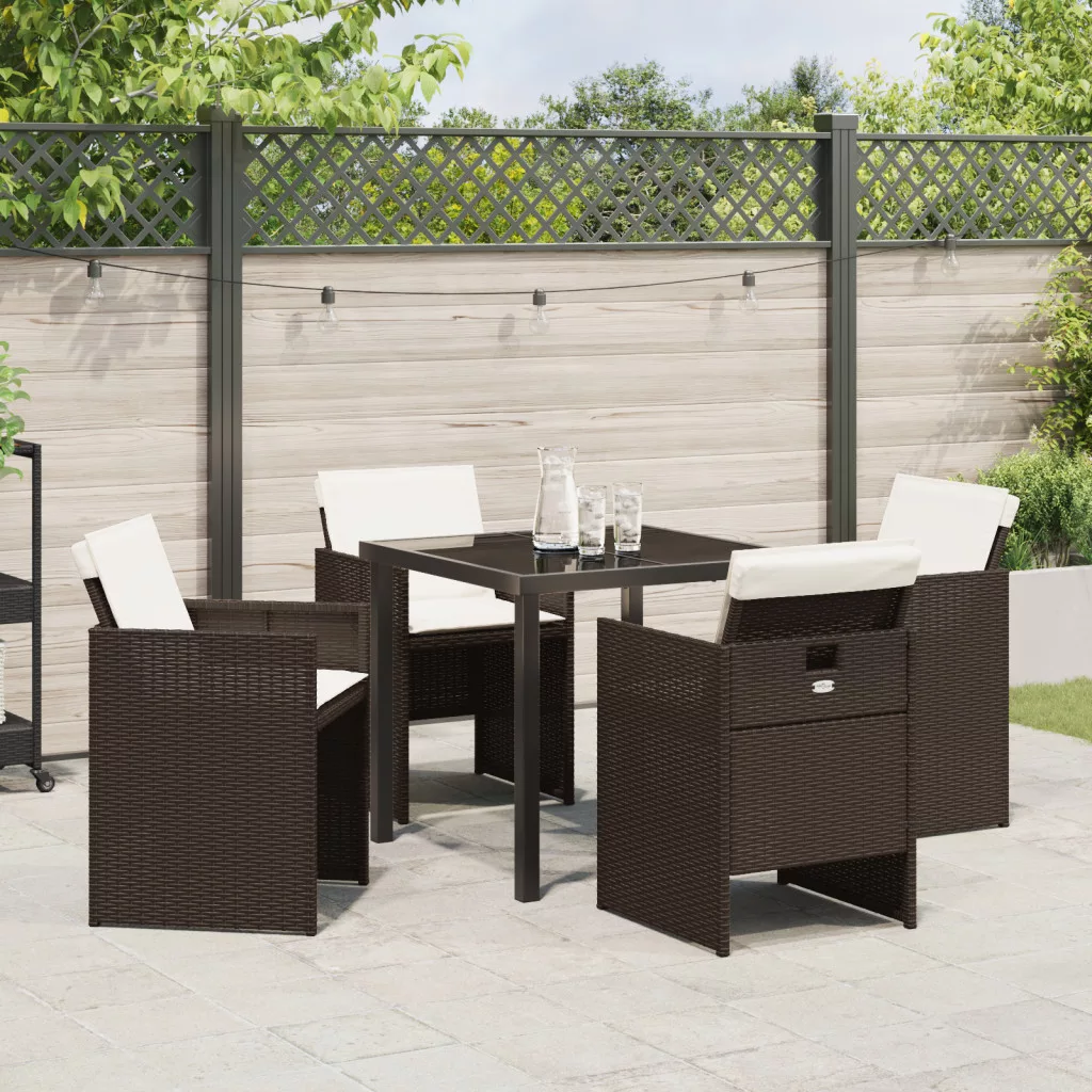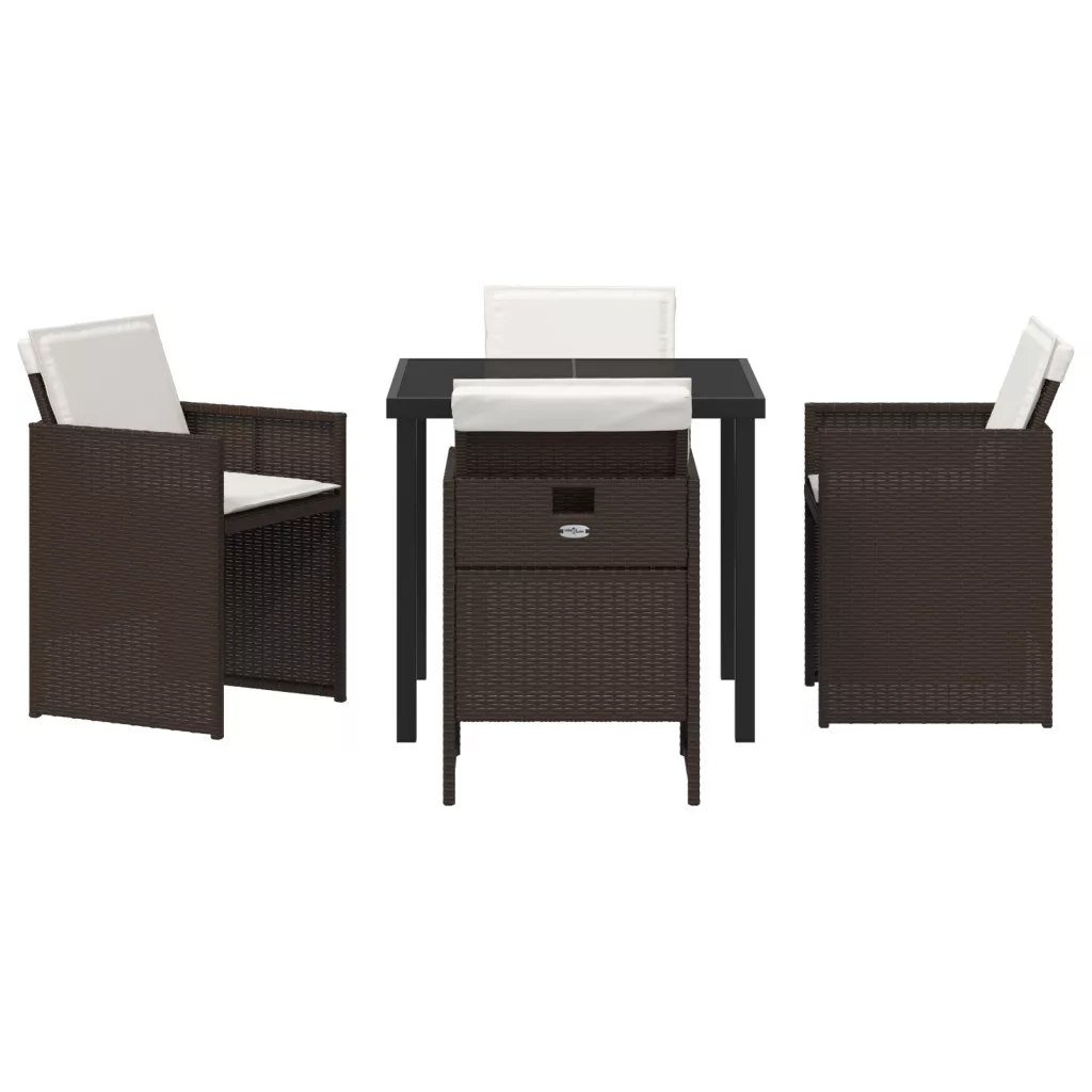 5 darabos kerti étkező szett párnákkal, barna polirattan