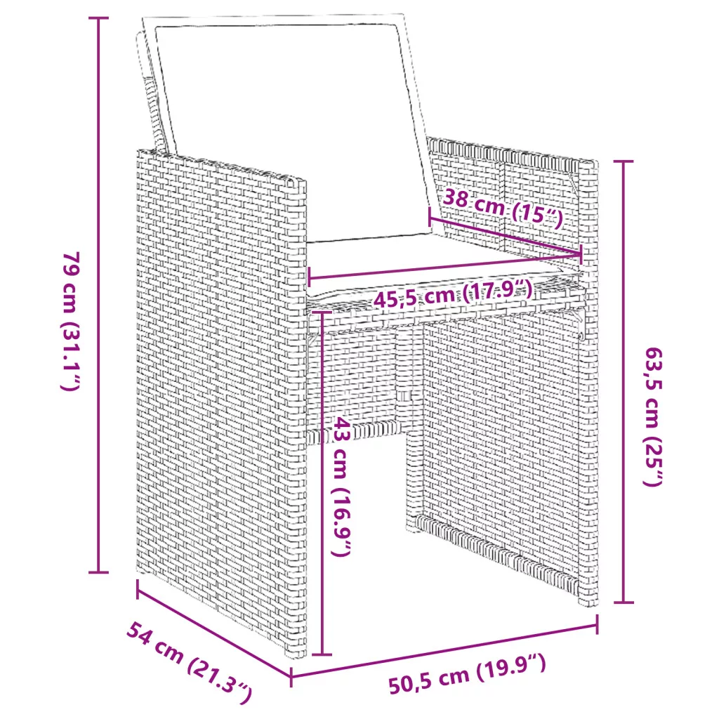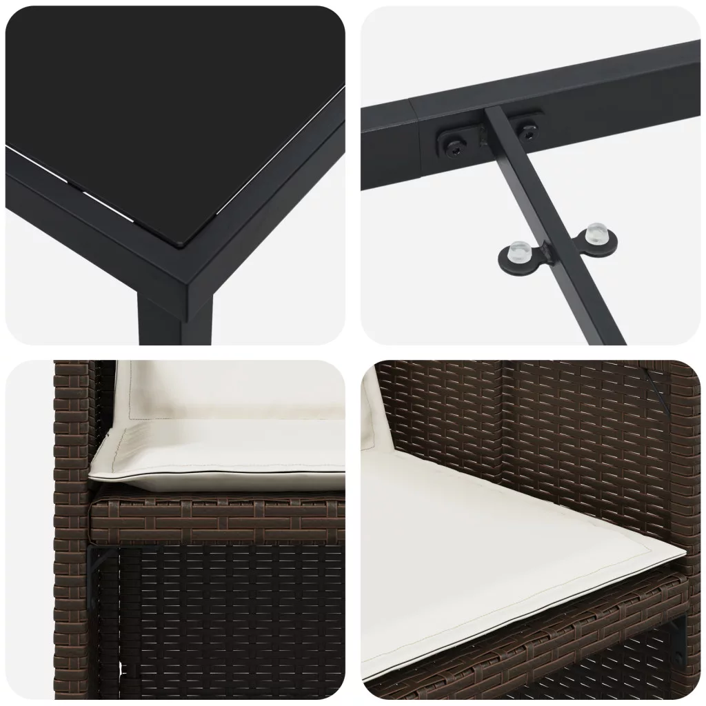 Ez a kerti étkező szett stílust és kényelmet ad a kültéri összejövetelekhez. Tökéletes a balkonnal vagy a kertben való pihenéshez. A barna polirattan és a krém párnák elegáns külsőt kölcsönöznek, így bármilyen kültéri helyet feldobnak, lehetővé téve, hogy barátokkal étkezz vagy beszélgessél nagyszerű stílusban. Tartós anyag: PE rattanból készült, egy szintetikus változat, ami hasonlít a valódi rattanszerű anyagra, ez a szett könnyű, könnyen tisztítható, és kültéri használatra készült. Tartósan kialakított, így hosszú ideig megőrzi a szép megjelenését. Kényelmes ülés: Minden szék vastag párnákkal van ellátva, amelyek puha ülést adnak, tökéletes hosszú pihenésekhez a szabadban. Élvezd az időt a kertben a legjobb kényelemmel. Kompakt tárolás: Az összecsukható háttámlák miatt könnyedén tárolhatod a székeket, amikor nincsenek használatban, így remek választás kisebb helyekre, vagy bárkinek, aki szereti a praktikus kültéri bútorokat. Egyszerű karbantartás: A párnahuzatok levehetőek és moshatóak, szóval tényleg egyszerűen tarthatod őket frissen, hogy a kültéri tered mindig rendezettnek tűnjön. Robusztus keret: A porszórt acél keret növeli az erősséget és a stabilitást, amit akár 242,5 lb súllyal is bír, biztosítva a biztonságos és stabil ülést. Maximum 110 kg ülésenként. Ügyeljen a nyílt tűz és más erős hőforrások veszélyére a termék közelében.