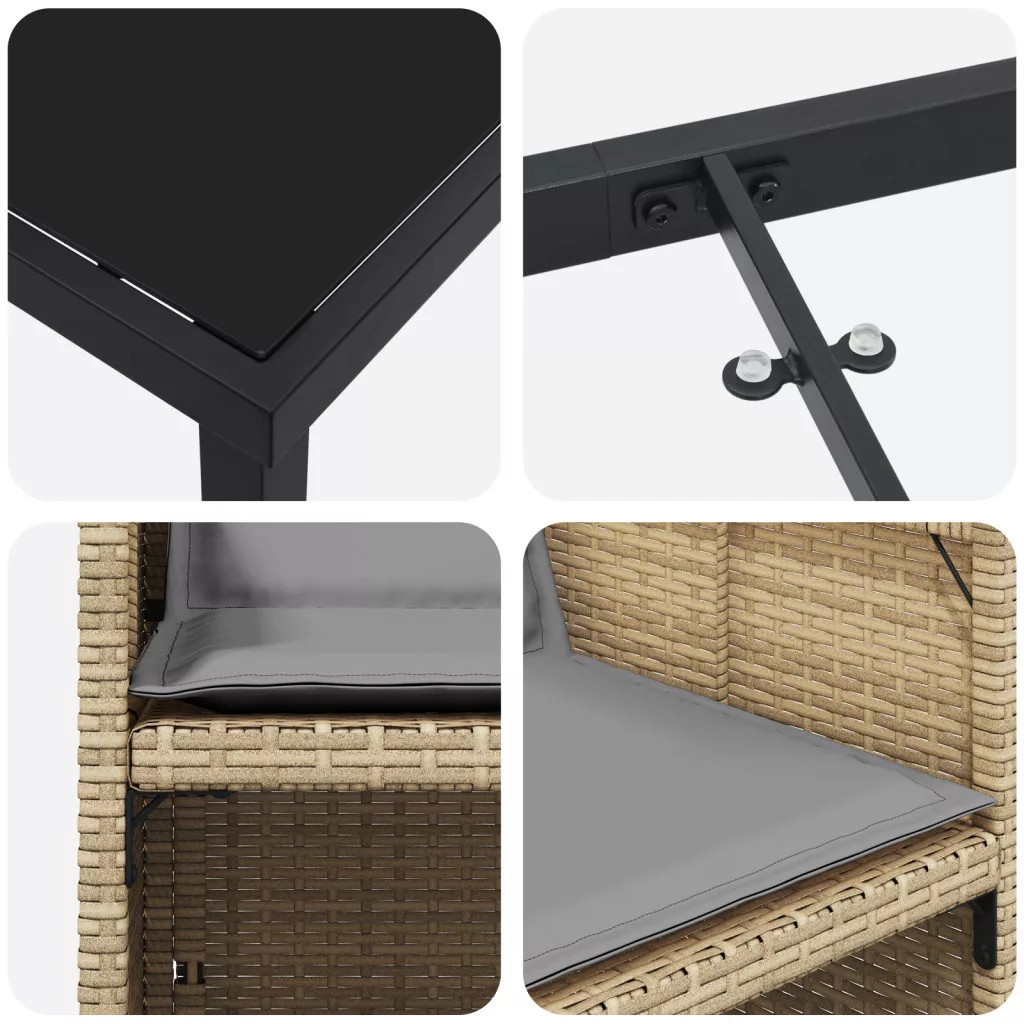 5 darabos kerti étkező szett párnákkal bézs polirattanban