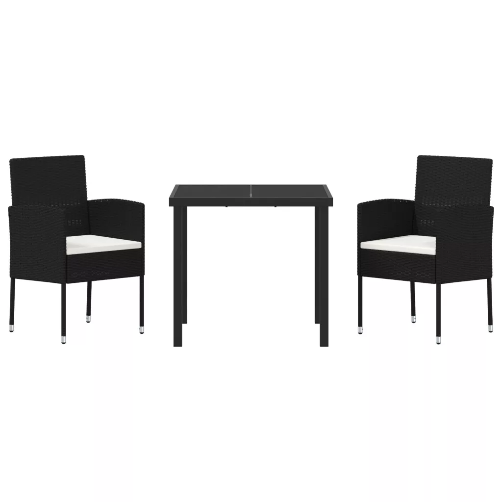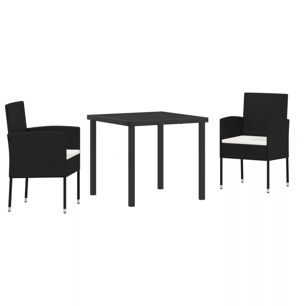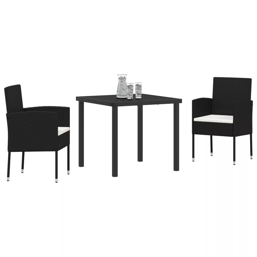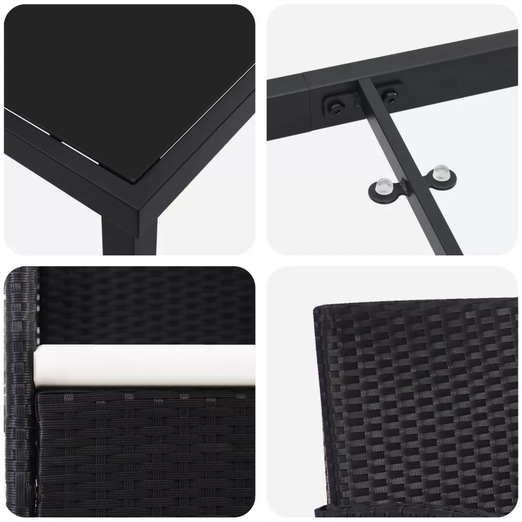 3 darabos kerti étkező szett párnákkal - Fekete poli rattan