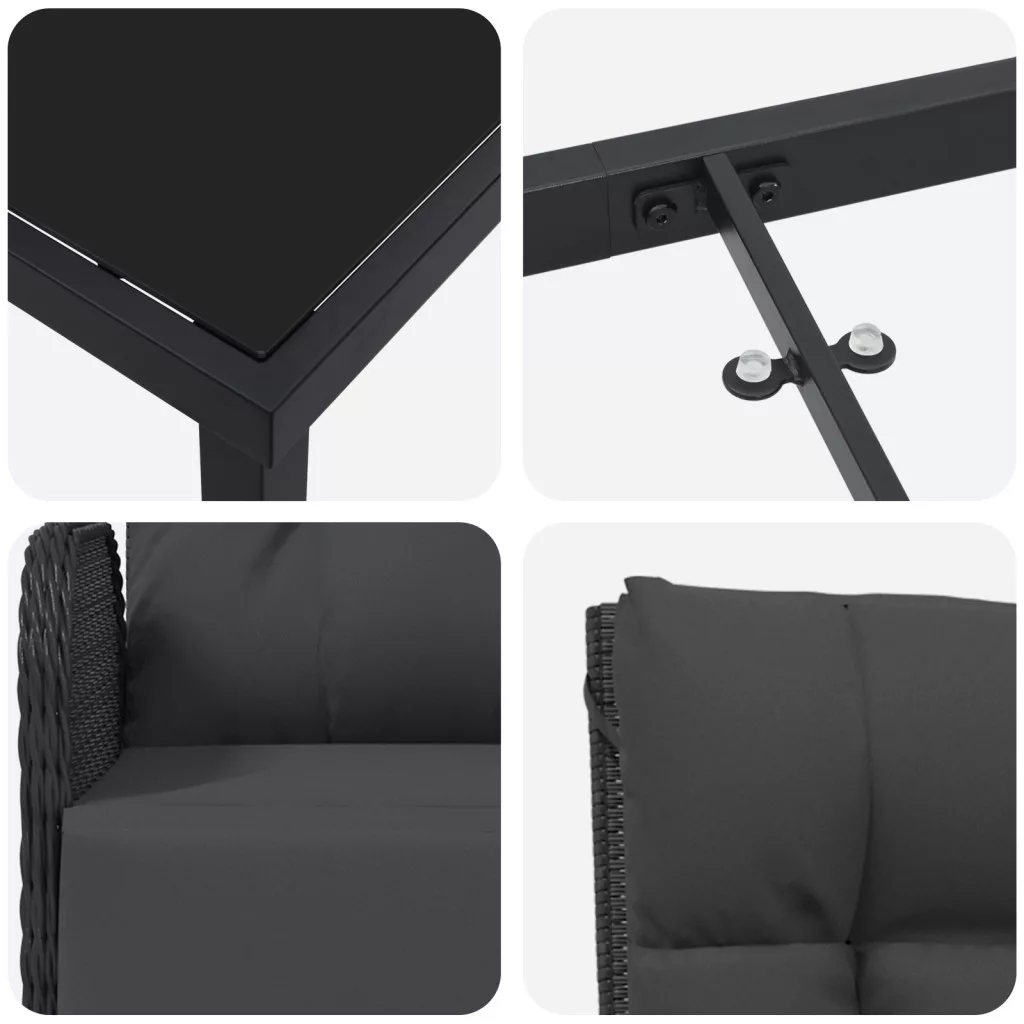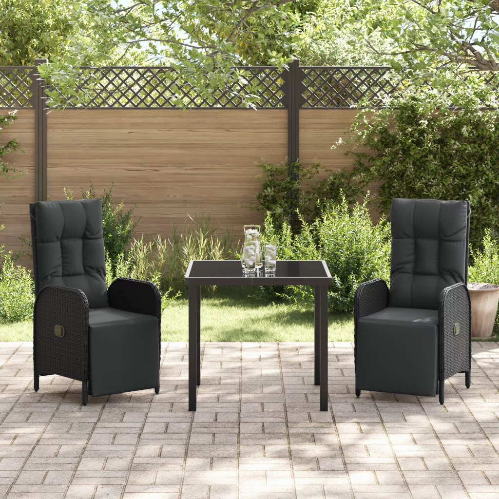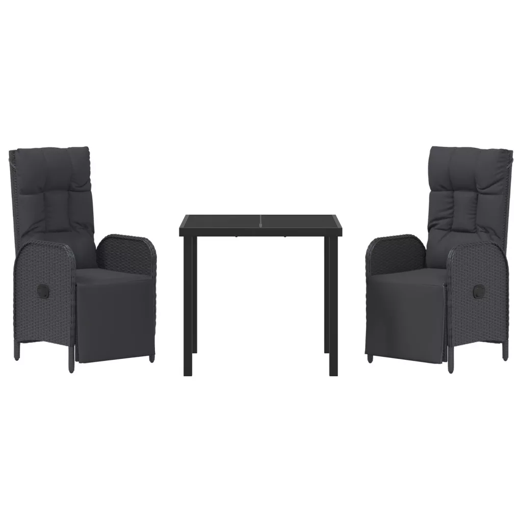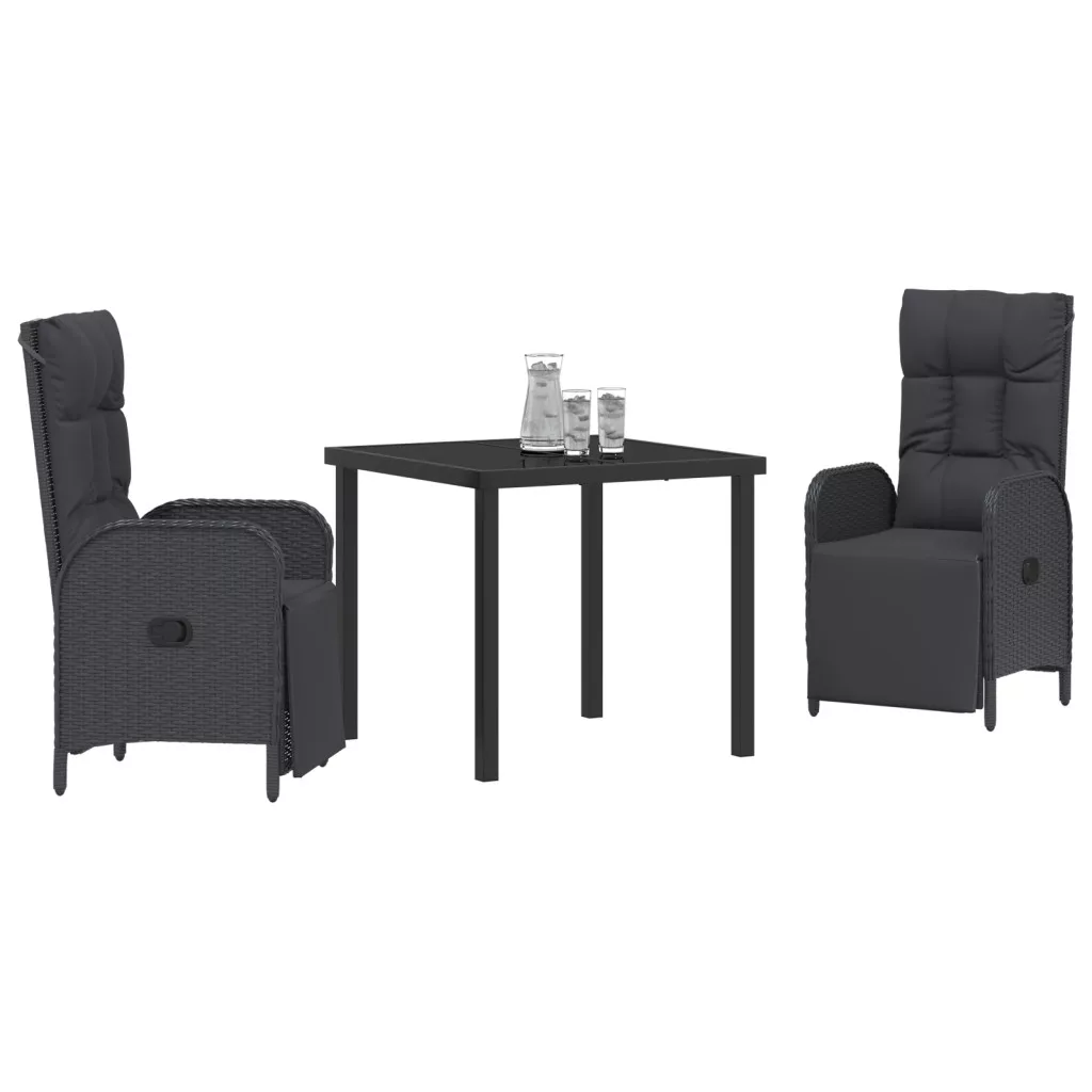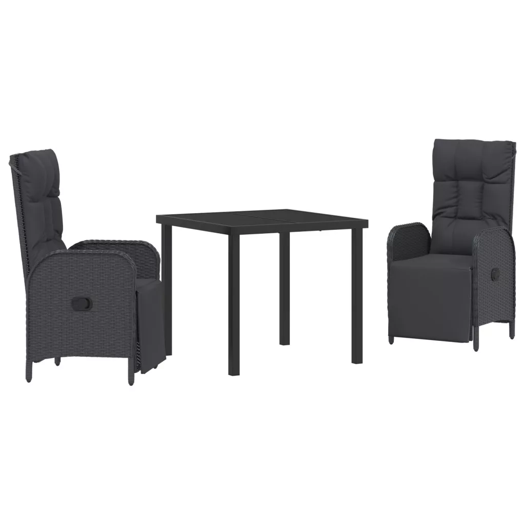 3 Részes Kerti Étkező Készlet Párnákkal Fekete Poli Rattan