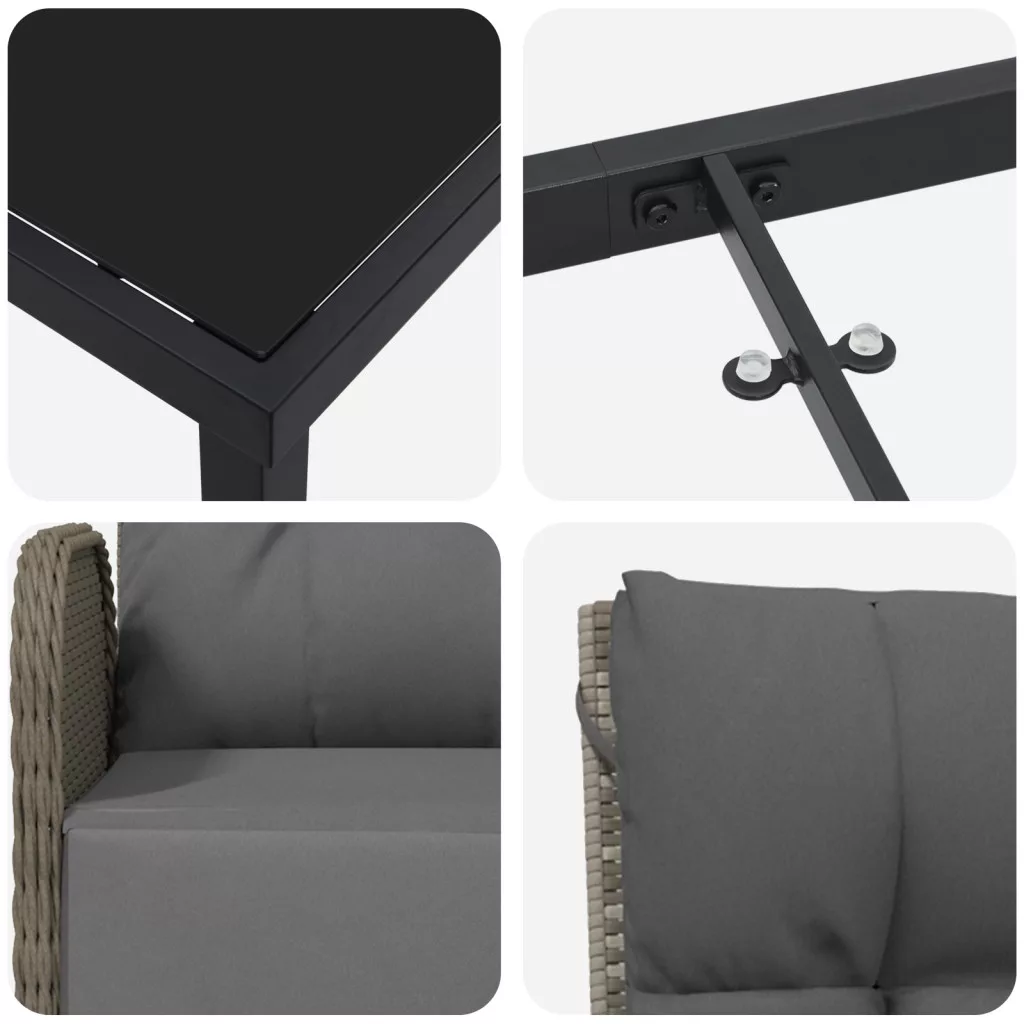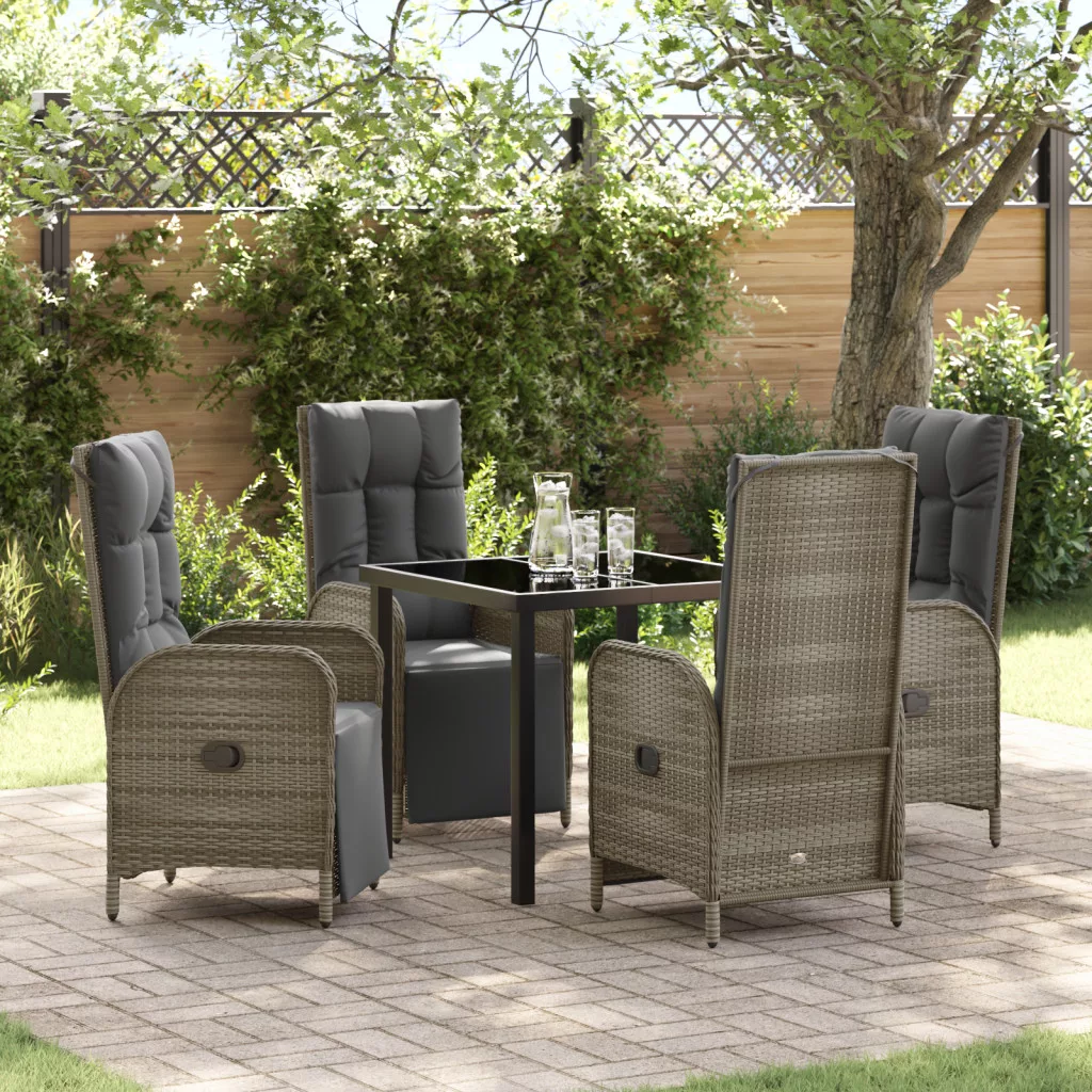 5 Darabos Kerti Étkező Szett Párnákkal Szürke Poli Rattan