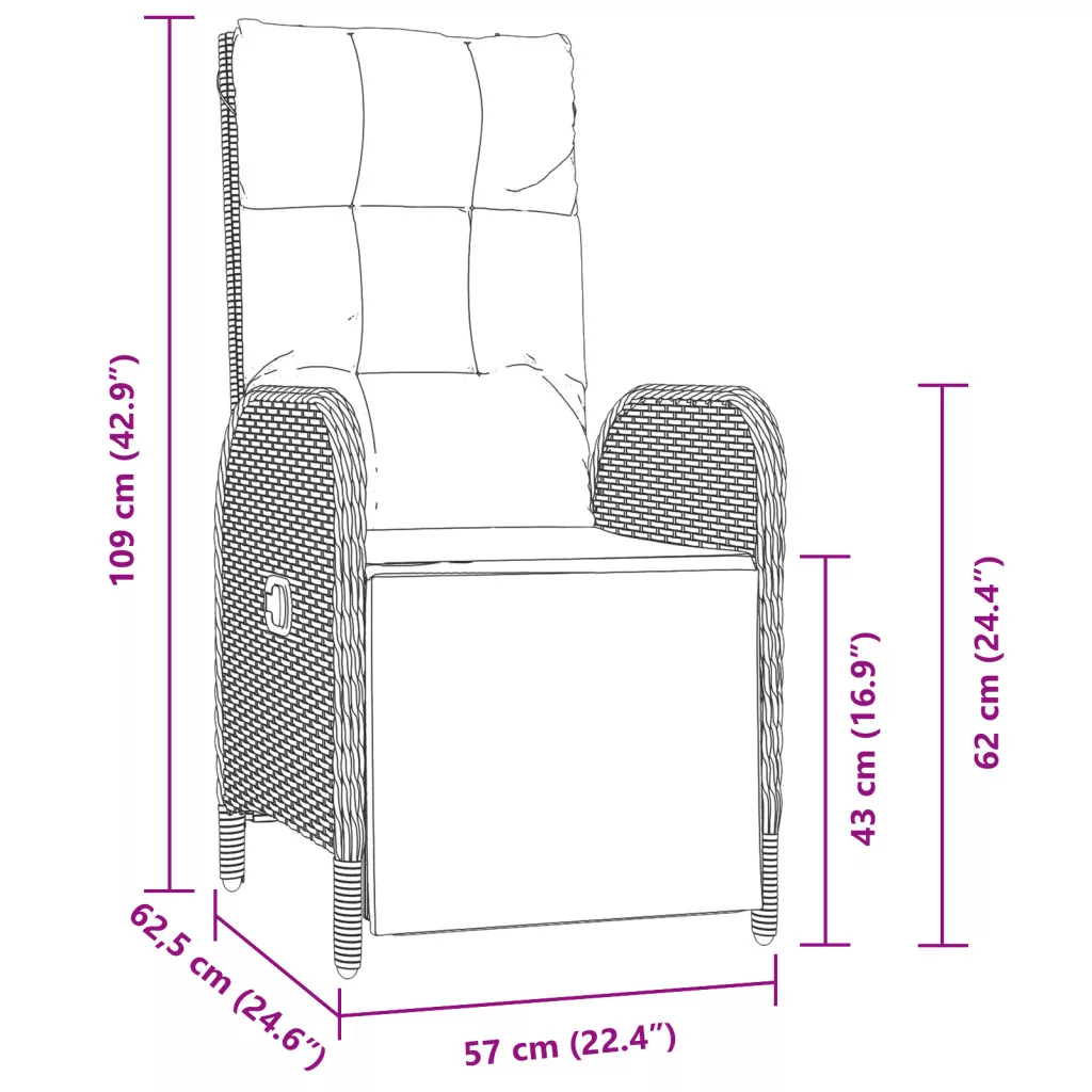 Ez a kültéri dönthető szék szett a modern vibrációkat kombinálja a kényelmes funkciókkal, ideális bármilyen kertbe, teraszra vagy erkélyre. A kézi szövésű, időjárásálló szürke poli rattan stílusos megjelenést biztosít, kényelmes helyet teremt a pihenéshez és a friss levegő élvezetéhez. Dönthető funkció: Állítsd be az ülőhelyedet pont jóra az állítható háttámlával és lábtartóval, így lazíthatsz, ahogy csak szeretnél. Kényelmes párnák: Minden székhez puha hát- és ülőpárnák tartoznak, amik luxus kényelmet biztosítanak egy igazán pihentető időtöltéshez. Tartós anyagok: Strapabíró poli rattan és robusztus porszórt acél vázzal készültek, így ezek a székek bírják az időt, miközben minimális karbantartást igényelnek. Könnyű karbantartás: A párnák könnyen levehetők mosásra, így egyszerűen tisztán tarthatod őket a mindennapi használatra. Stílusos és Modern: A trendi szürke szín és a letisztult design szuper megjelenést ad bármilyen kültéri térnek, így jól illik a különböző dekorációs stílusokhoz. Maximum 110 kg ülésenként.