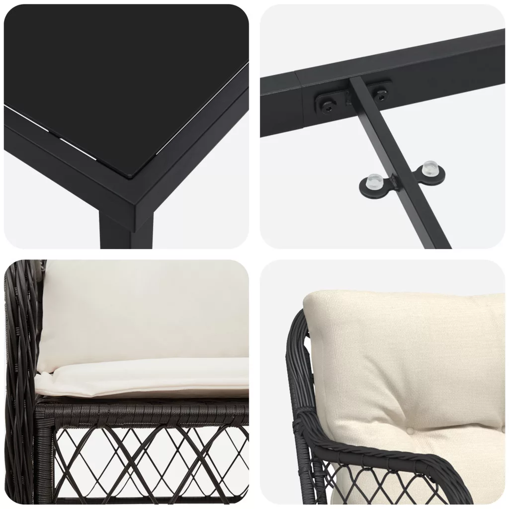 Ez a Kerti Étkező Szett tényleg jó választás. Trendy poli rattanból készült, ami eleganciát hoz a kültéri helyszínekre. A kényelmes székek, puha párnákkal, tökéletes teret biztosítanak étkezéshez vagy csak lazításhoz. Kényelmes Ülés: Vastag párnákkal fantasztikus kényelmet élvezhetsz, ideális étkezéshez vagy lazításhoz. Tartósság: A strapabíró PE rattan tehet értesz, ami állja az időjárás csapásait, és nem néz ki rosszul. Tartós! Könnyű Karbantartás: A párnák kivehető huzattal jönnek, így elég csak lehúzni, bedobni a mosásba, és kész is. Masszív Váza: A szilárd porfestett acél mindent biztonságban tart, miközben csak hátradőlsz és lazítasz. Ez a bútor sokáig fog tartani. Ideális Méret: 58,5 x 67 x 86 cm-es méretével ez a szett simán elfér kisebb helyeken is, de még elég teret ad egy jó étkezéshez. Maximum 110 kg ülésenként. Ügyeljen a nyílt tűz és más erős hőforrások veszélyére a termék közelében.
