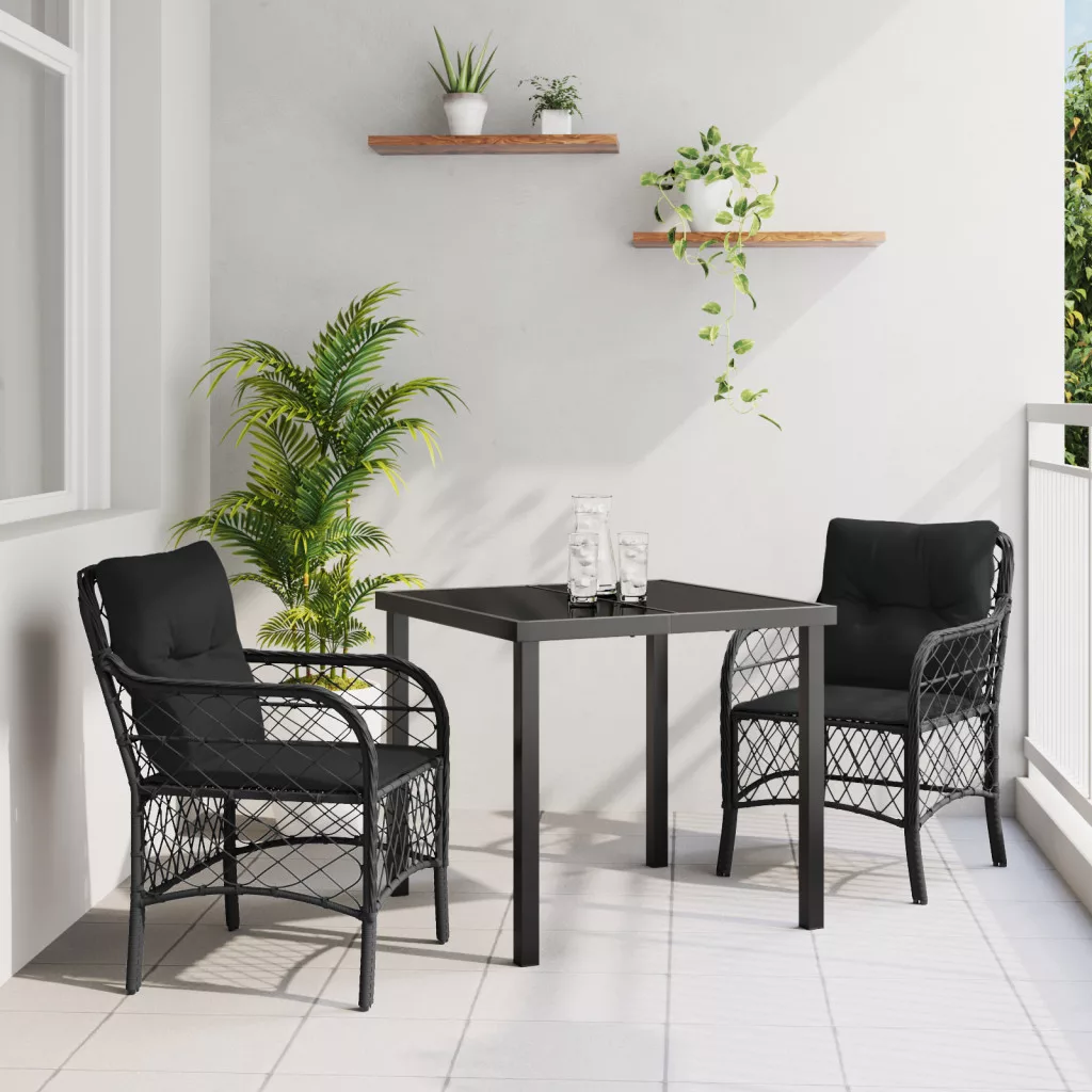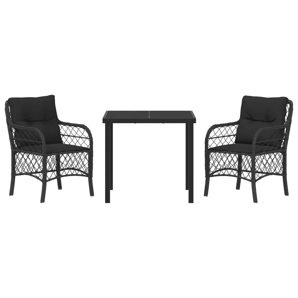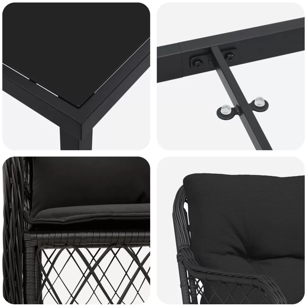 3 darabos Kerti Étkező Szett Párnákkal Fekete Poli Rattan