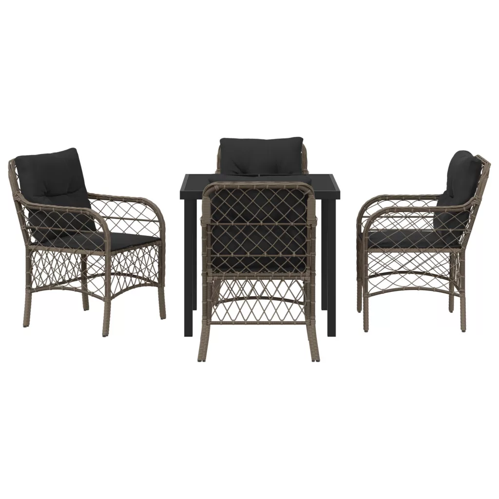 5 részes Kerti Étkező Szett párnákkal Szürke Poli Rattan