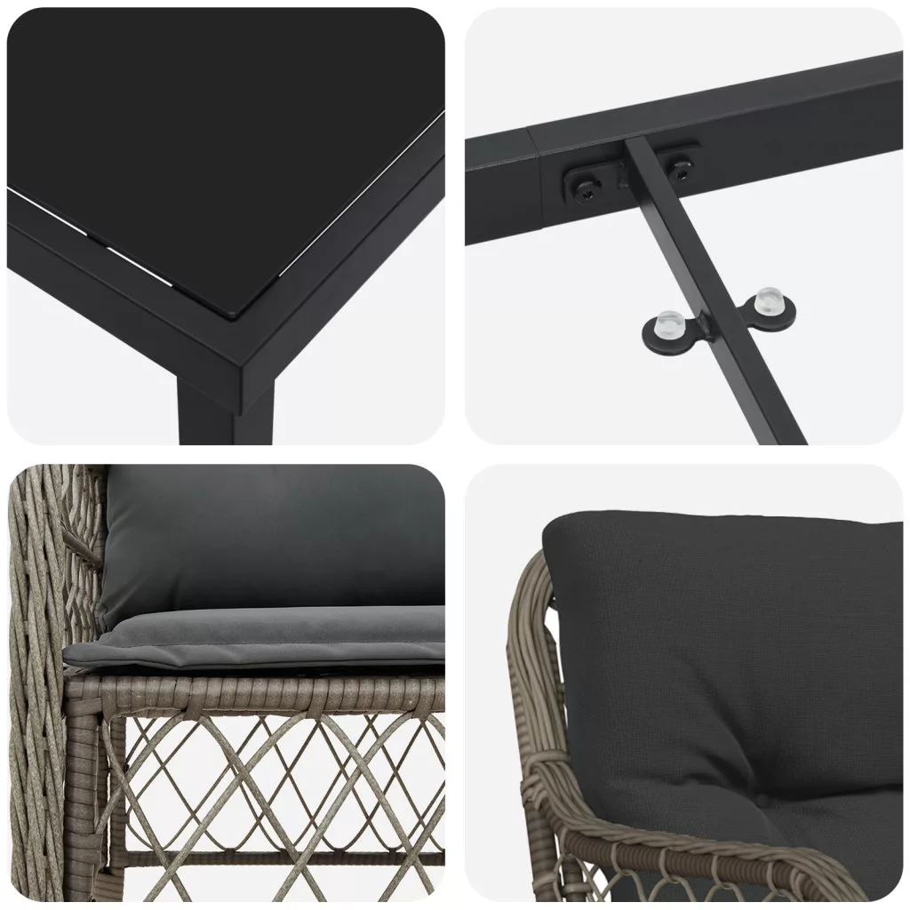 Ez a Kerti Szék Szett stílust, kényelmet és praktikusságot hoz össze, szürke poli rattan, ami feldobja a kültéri teredet. Tökéletes teraszokra, erkélyekre vagy kertekbe, ezek a székek puha párnákkal kiemelik a kényelmet és megfelelő helyet biztosítanak a pihenéshez vagy étkezéshez. Kényelmes Ülőhely: A vastag párnák nagyszerűvé teszik a kültéri étkezéseket vagy lazításokat, lehetővé téve, hogy órákat tölts el a szabadban a barátaiddal és családoddal. Tartósság: Kiváló minőségű PE rattanból készült, ez a kerti szett bármilyen időjárást elbír, megtartva stílusát és szórakozását. Könnyű Karbantartás: A levehető párnahuzatokkal a tisztítás gyerekjáték; csak húzd le őket, és dobd be a mosógépbe, hogy frissek maradjanak. Erős Váz: A szilárd, porszórt acélváz biztosítja, hogy stabil és biztonságos ülést adjon, amit mindennapi használatra terveztek. Tökéletes Méret: 58.5 x 67 x 86 cm-es méretével ezek a székek ideálisak kisebb kültéri helyszínekhez, de még mindig bőséges helyet adnak a kényelmes étkezéshez. Maximum 110 kg ülésenként. Ügyeljen a nyílt tűz és más erős hőforrások veszélyére a termék közelében.