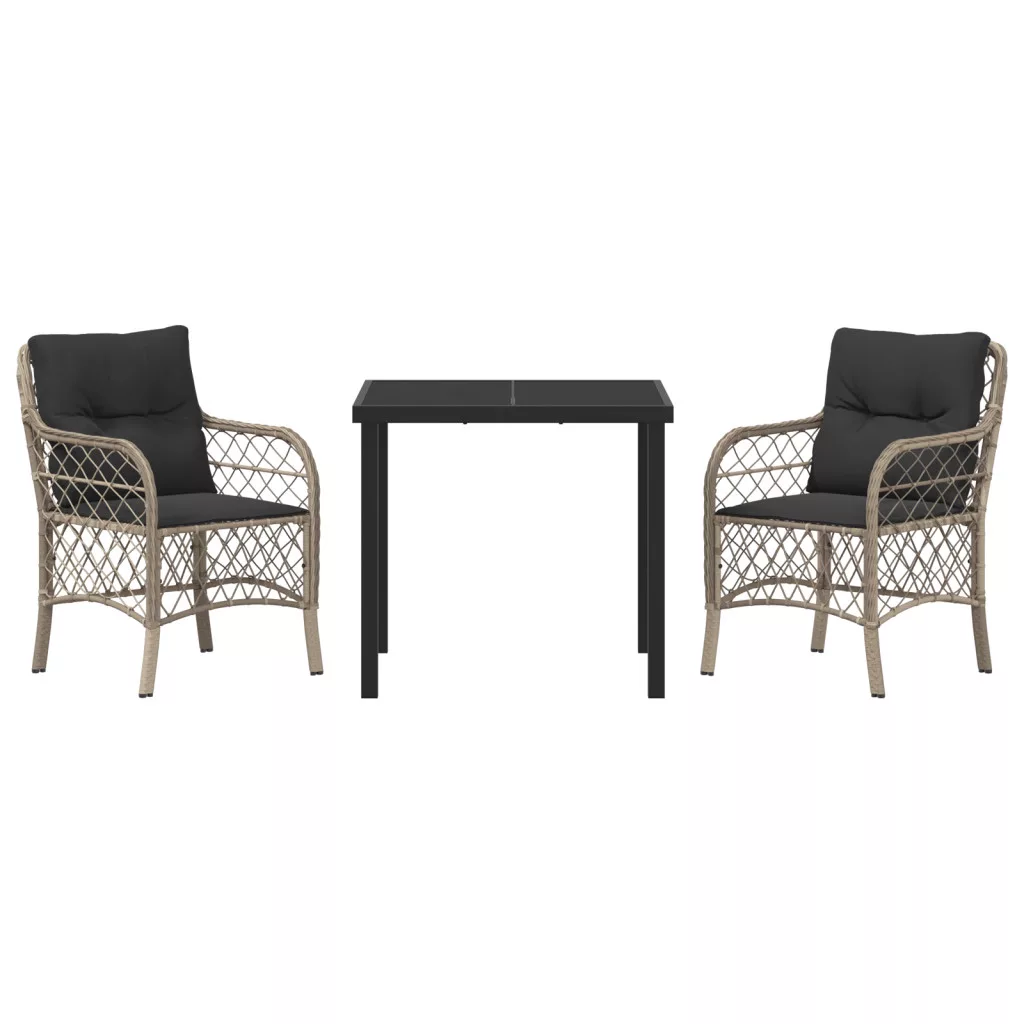 3 Darabos Kerti Étkező Szett Párnákkal Világosszürke Poli Rattan