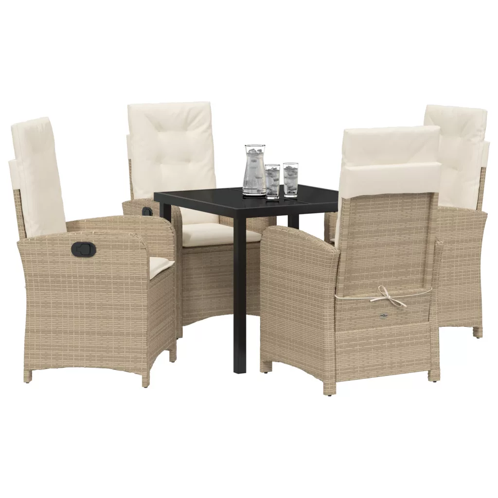 5 Darabos Kerti Étkezőszett Párnákkal Bézs Poli Rattan