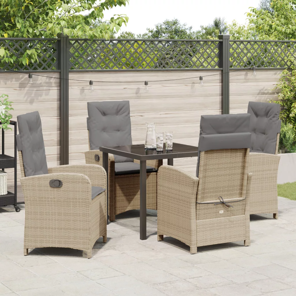 5 db-os Kerti Étkező Szett Párnákkal Bézs Poli Rattan