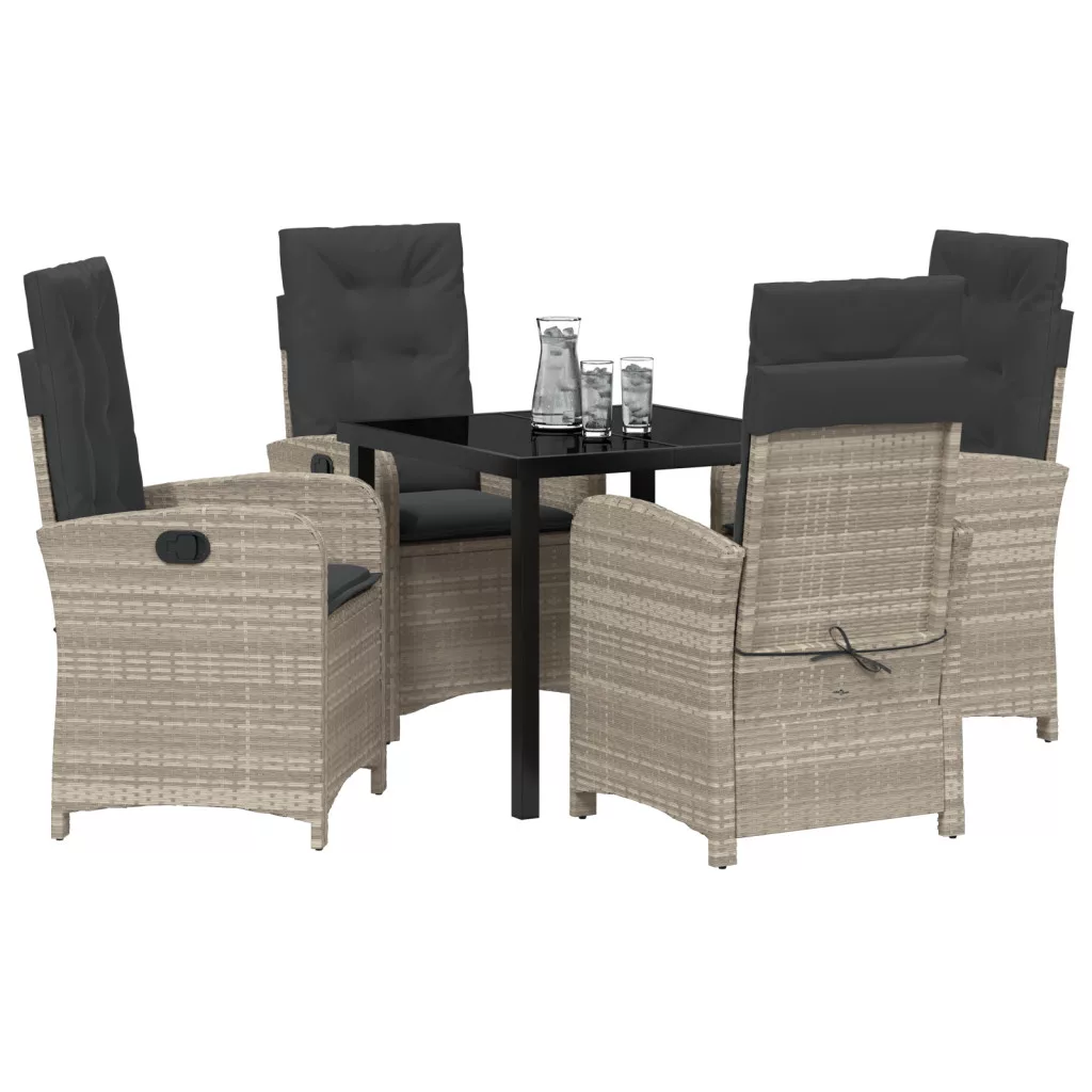 5 darabos Kerti Étkező Szett Párnákkal Világosszürke Polirattan