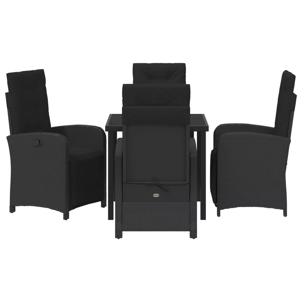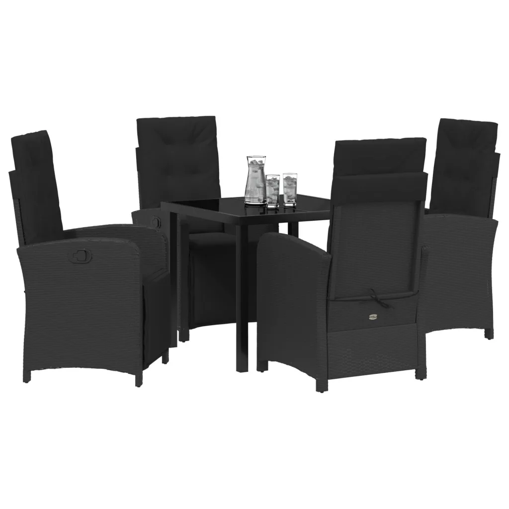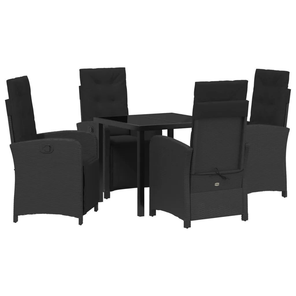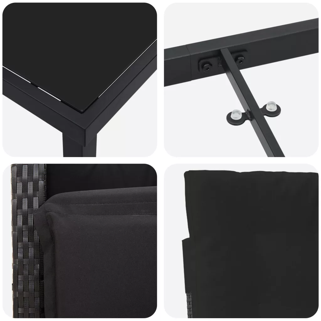 5 Részes Kerti Étkező Készlet Párnákkal - Fekete Polirattan