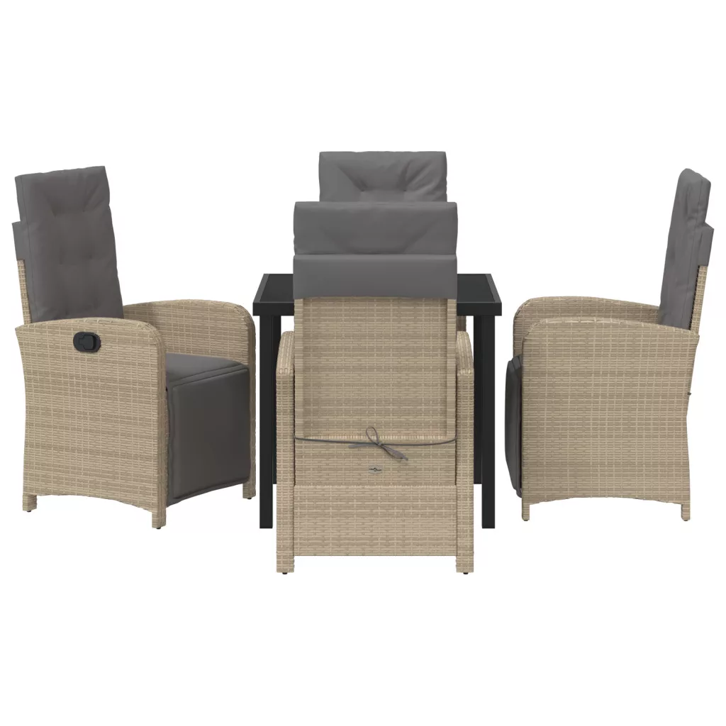 5 Darabos Kert Étkező Szett Párnákkal Bézs Poli Rattan