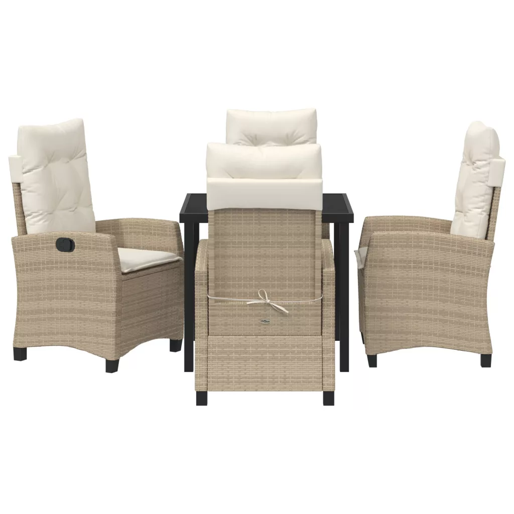 5 Részes Kerti Étkező Szett Párnákkal Bézs Poly Rattanból.