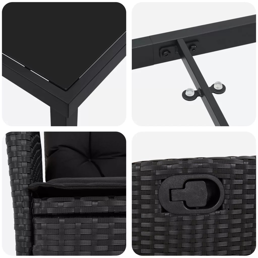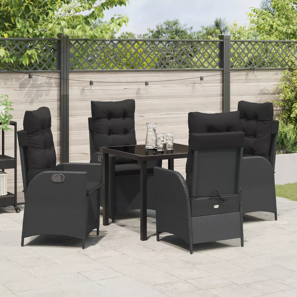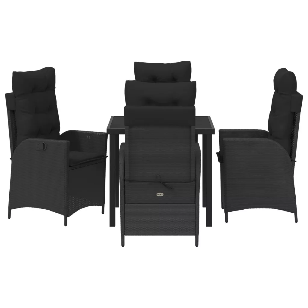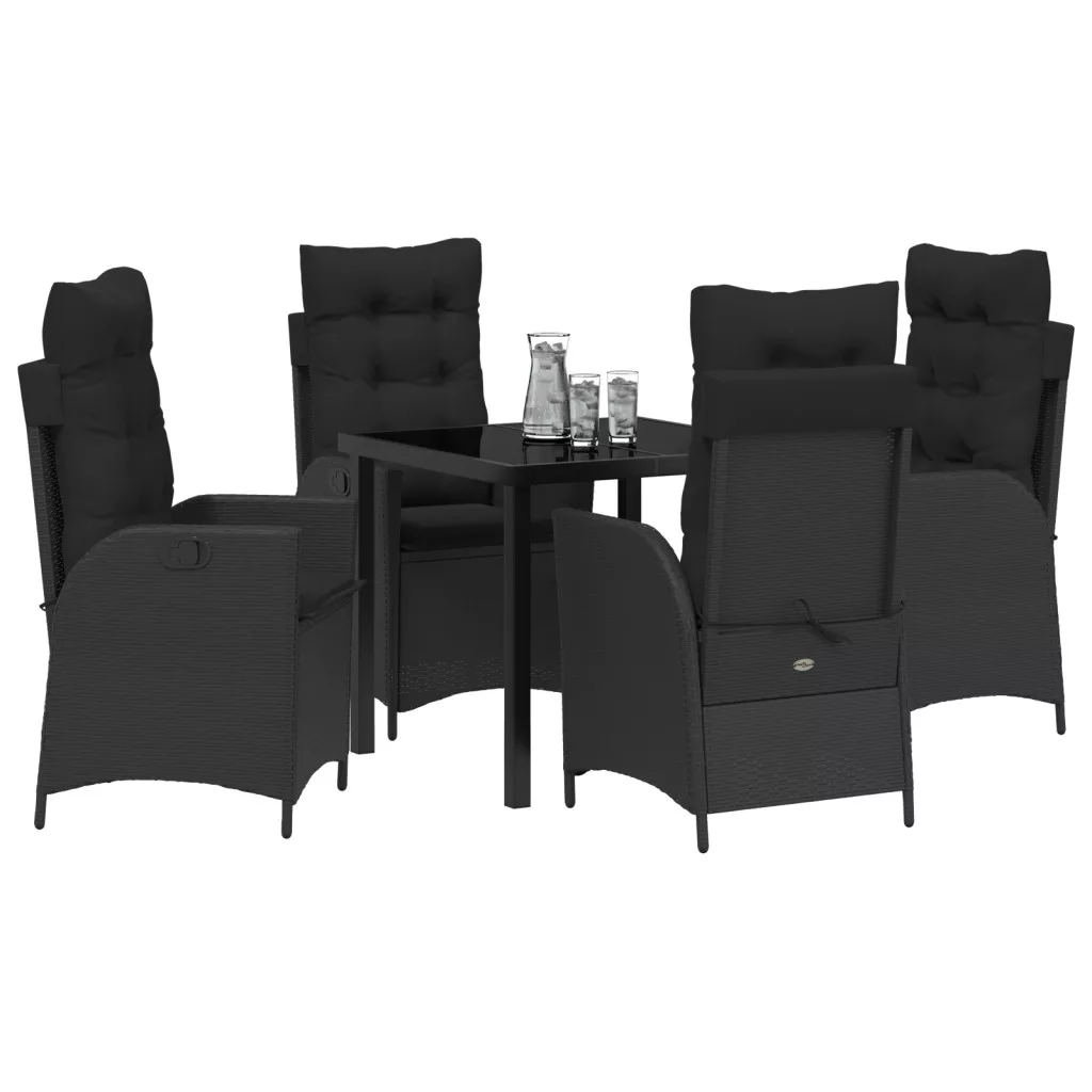 5 db-os Kerti Étkező Szett Párnákkal - Fekete Poli Rattan