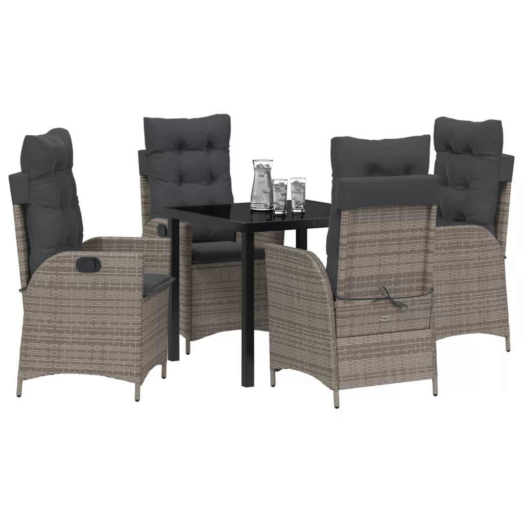5 darabos kert étkező szett párnákkal Szürke poli rattan