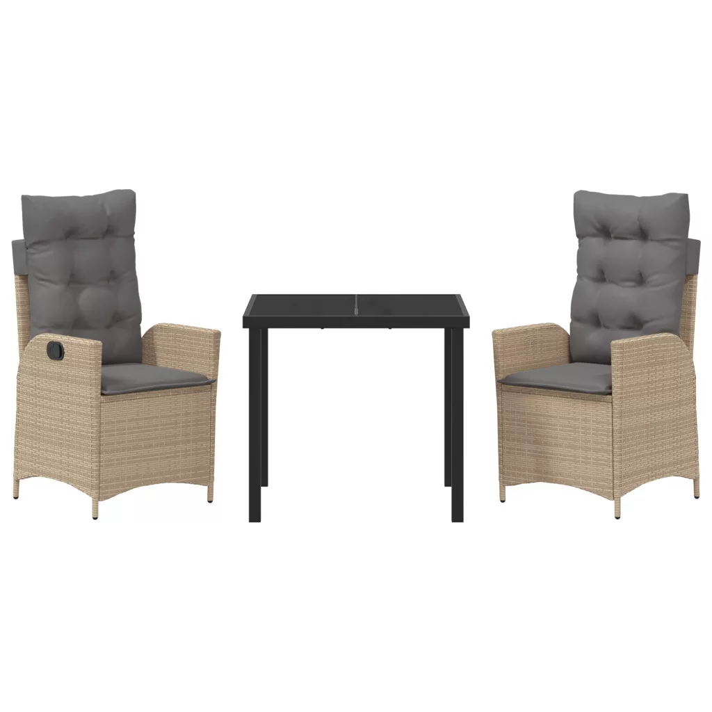 3 Részes Kerti Étkező Szett Párnákkal Bézs Polirattan