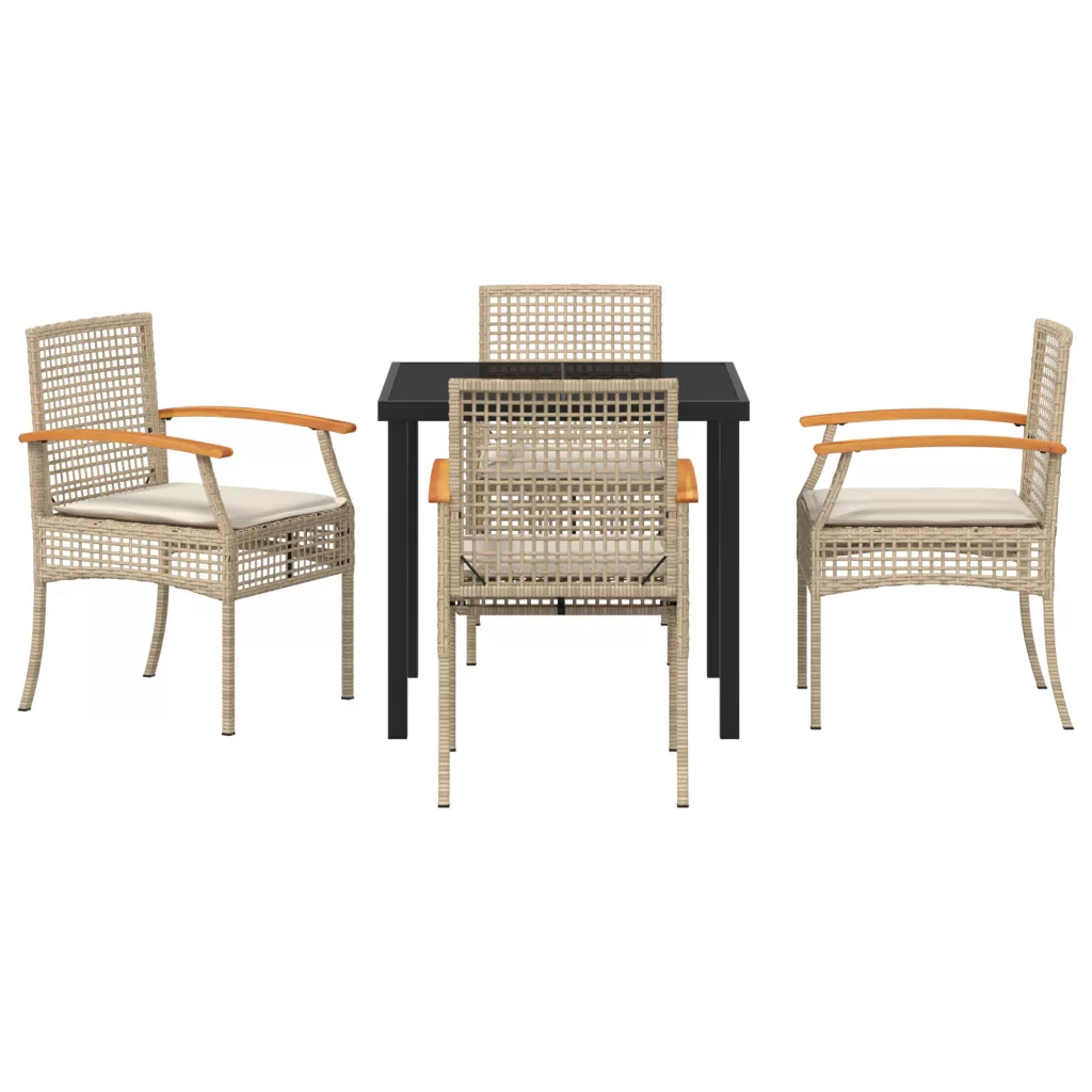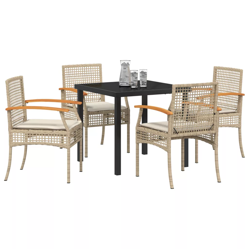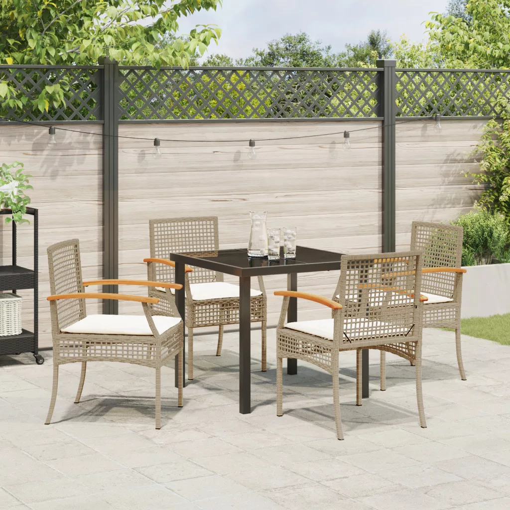 5 darabos Kerti Étkező Szett Párnákkal Bézs Poli Rattan