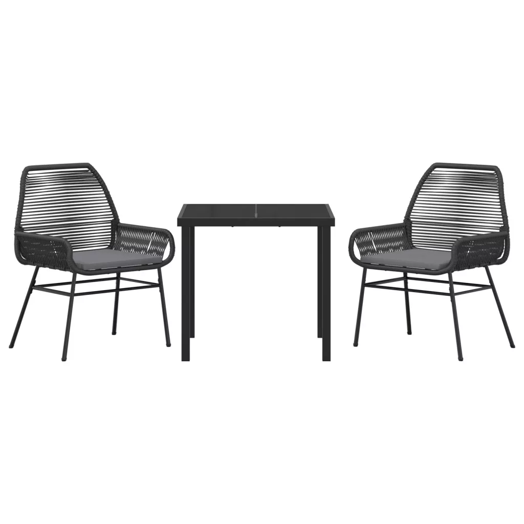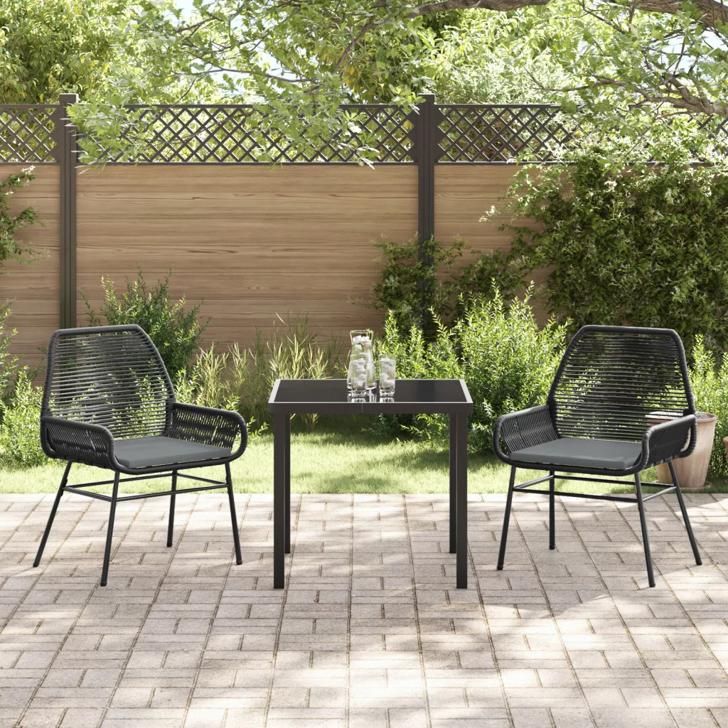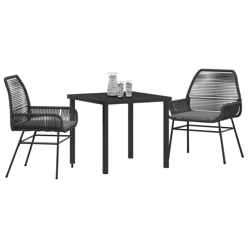 3 Darabos Kerti Étkező Szett Párnákkal Fekete Poli Rattan