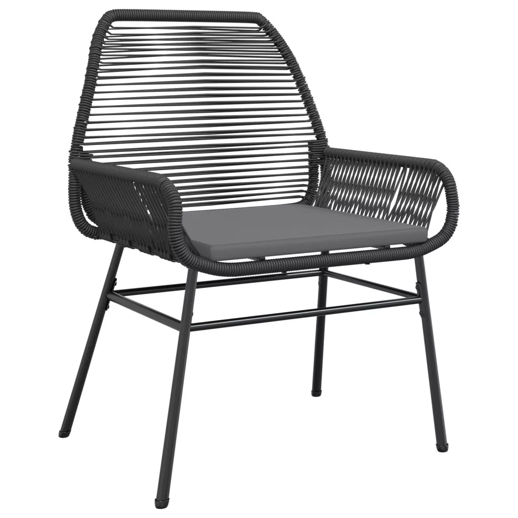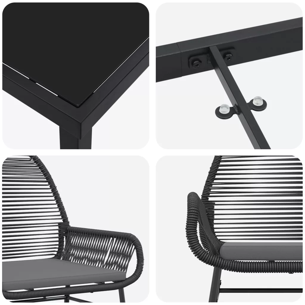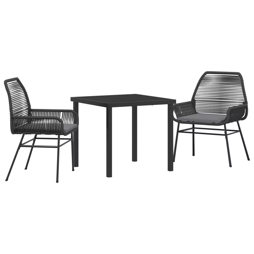 3 Darabos Kerti Étkező Szett Párnákkal Fekete Poli Rattan