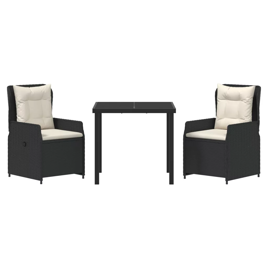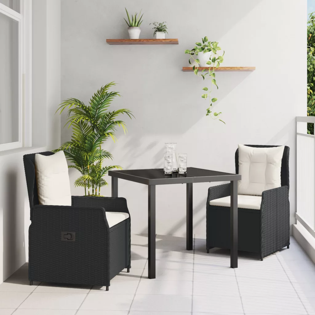 3 Darabos Kerti Étkező Szett Fekete Polirattan