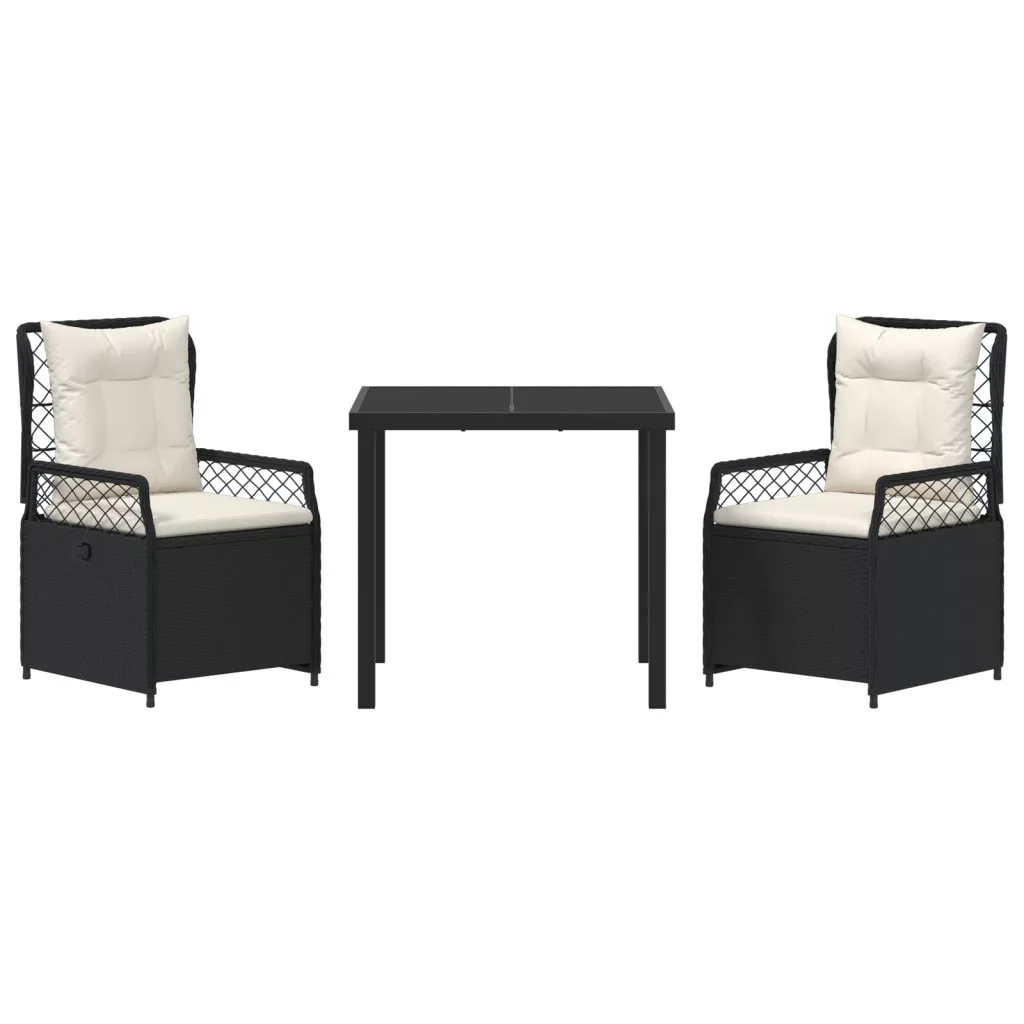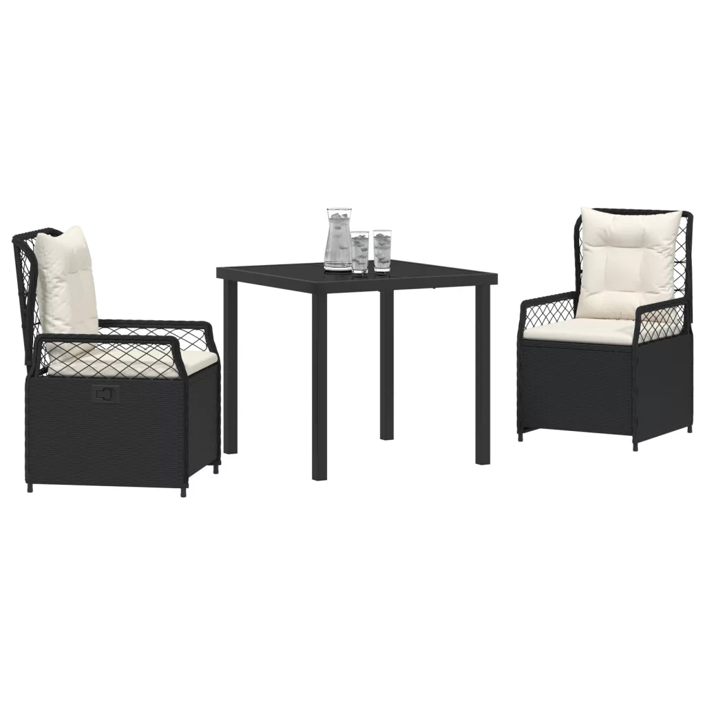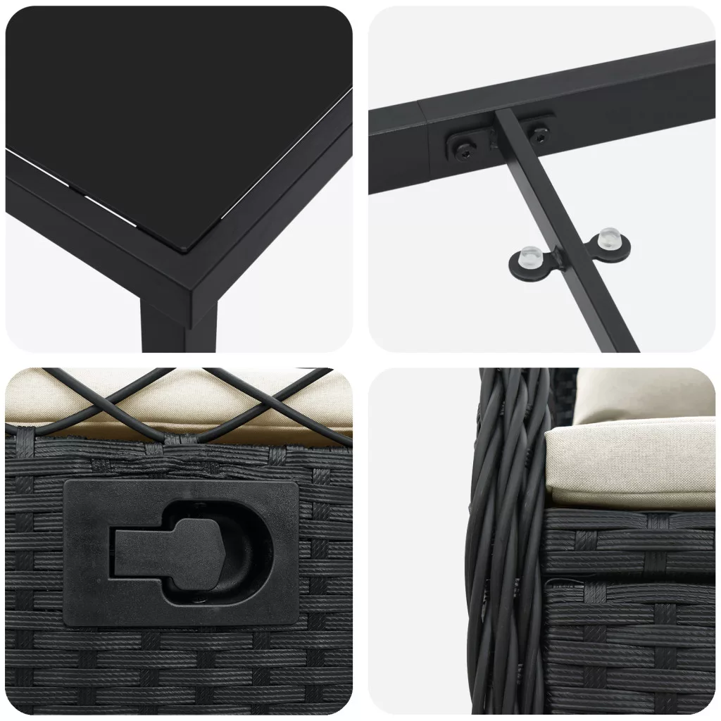 3 darabos kerti étkező szett Fekete Polirattan