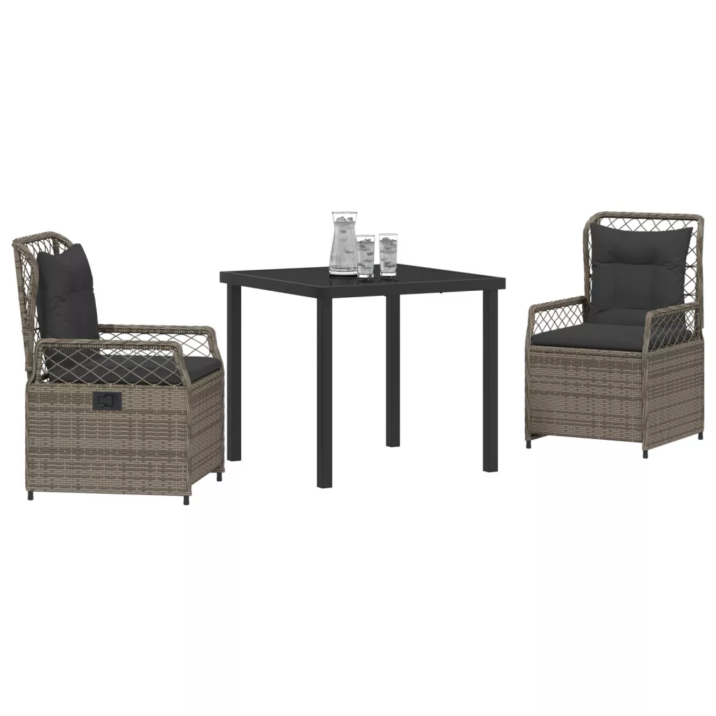 3 darabos kerti étkező szett szürke poli rattan