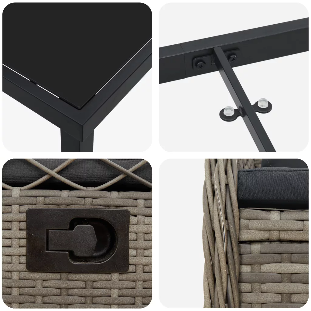 Ez a fekvő kertiszék készlet stílus és praktikusság keverékével teszi kellemesebbé a szabadban töltött időt. PE rattanból és durva porszórt acélvázból készült, ezek a székek modern dizájnt és kényelmet kínálnak, tökéletesek teraszra, erkélyre vagy udvarra. A tartós PE rattan időjárásálló és alacsony karbantartási igényű, így ideális kültéri használatra minden évszakban, miközben hasonlít a természetes rattanra. Az állítható háttámla lehetővé teszi, hogy megtaláld a számodra legjobb pihenőszöget, és sokféle ülési lehetőséget kínál bármely alkalomra. A vastag párnák fokozzák a kényelmet, így kellemes élményt nyújtanak társaságban vagy csendes szabadtéri pillanatokban. A levehető és mosható párnahuzatok megkönnyítik a tisztítást és karbantartást, így a székek mindig frissen tarthatók minimális erőfeszítéssel. A porszórt acélváz biztosítja a székek stabilitását, így bírják a mindennapi kültéri használatot és megőrzik az alakjukat és funkcionalitásukat. Maximum 110 kg ülésenként. Ügyeljen a nyílt tűz és más erős hőforrások veszélyére a termék közelében.