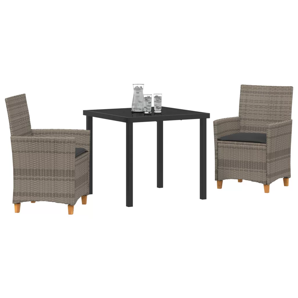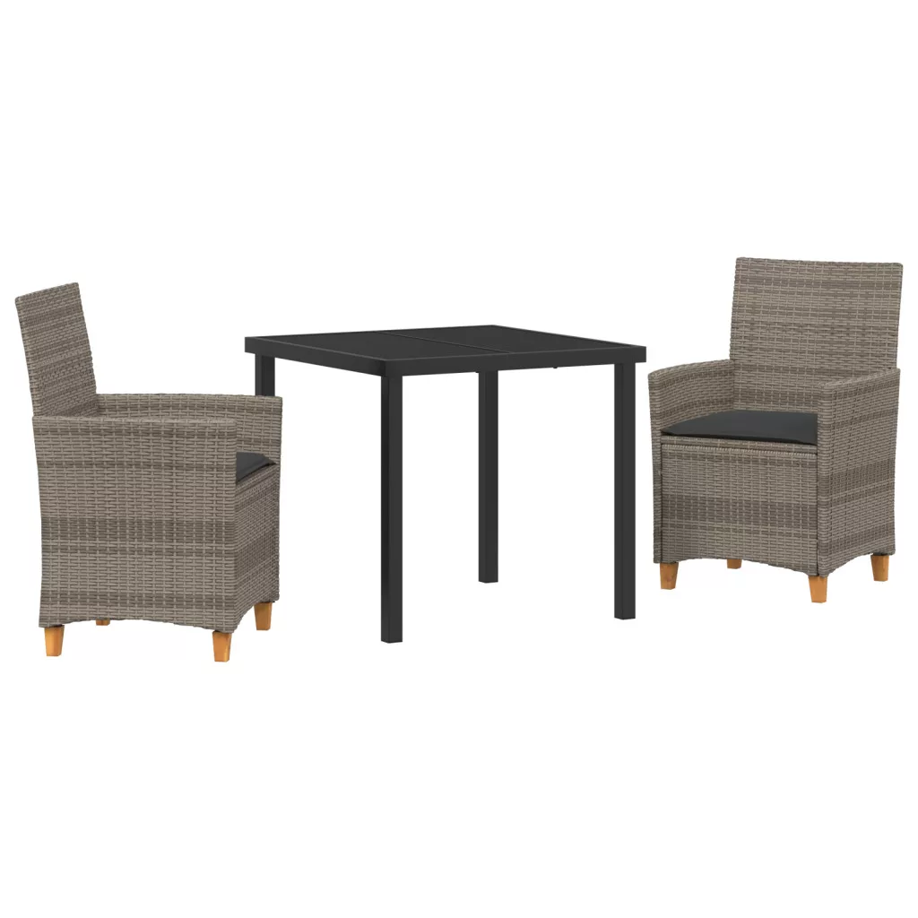 3 részes Kerti Étkező Szett Párnákkal Szürke Polirattan