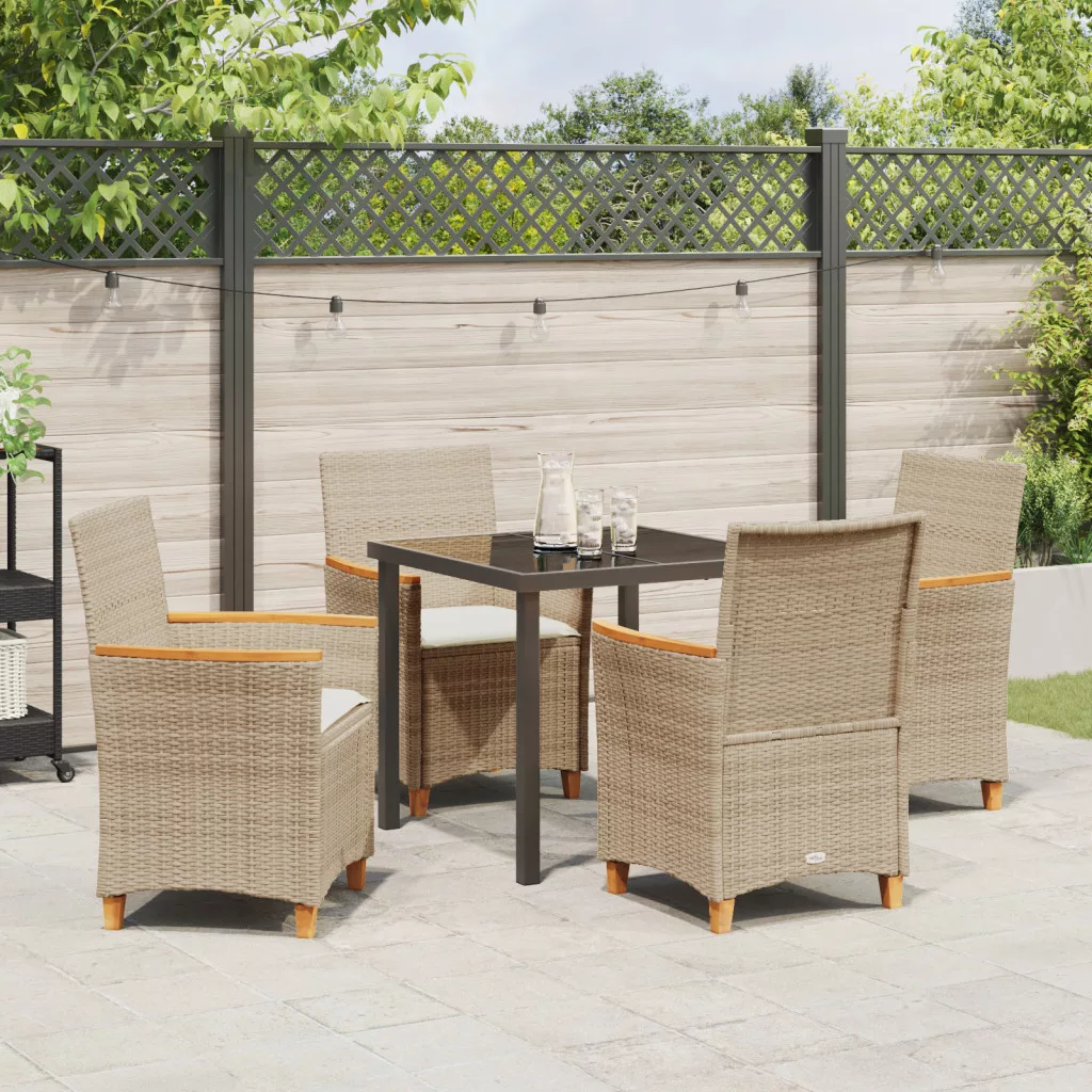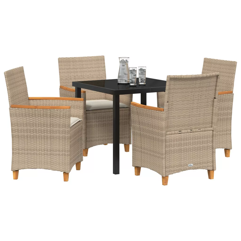 5 darabos kerti étkező szett párnákkal bézs poli rattan
