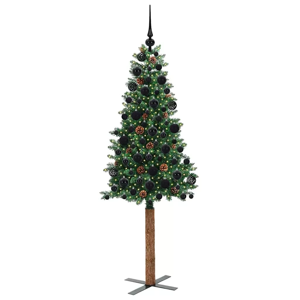 Karcsú karácsonyfa 300 LED-del Zöld 180 cm PVC és tömör fenyőfa