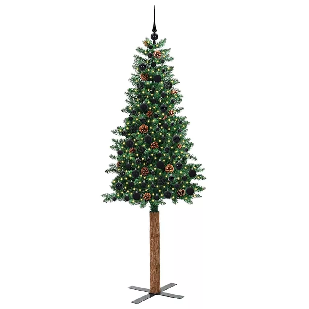 Karcsú karácsonyfa 300 LED-del Zöld 210 cm PVC és tömör fenyőfa