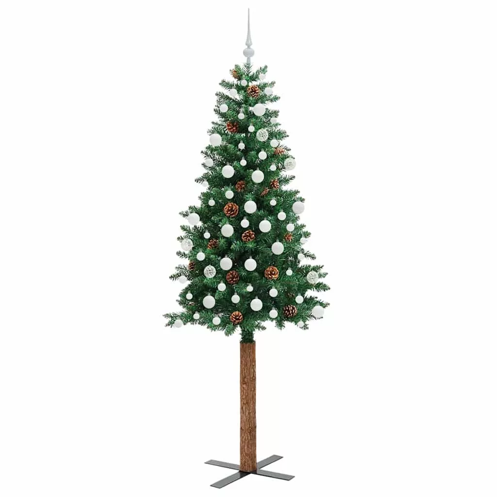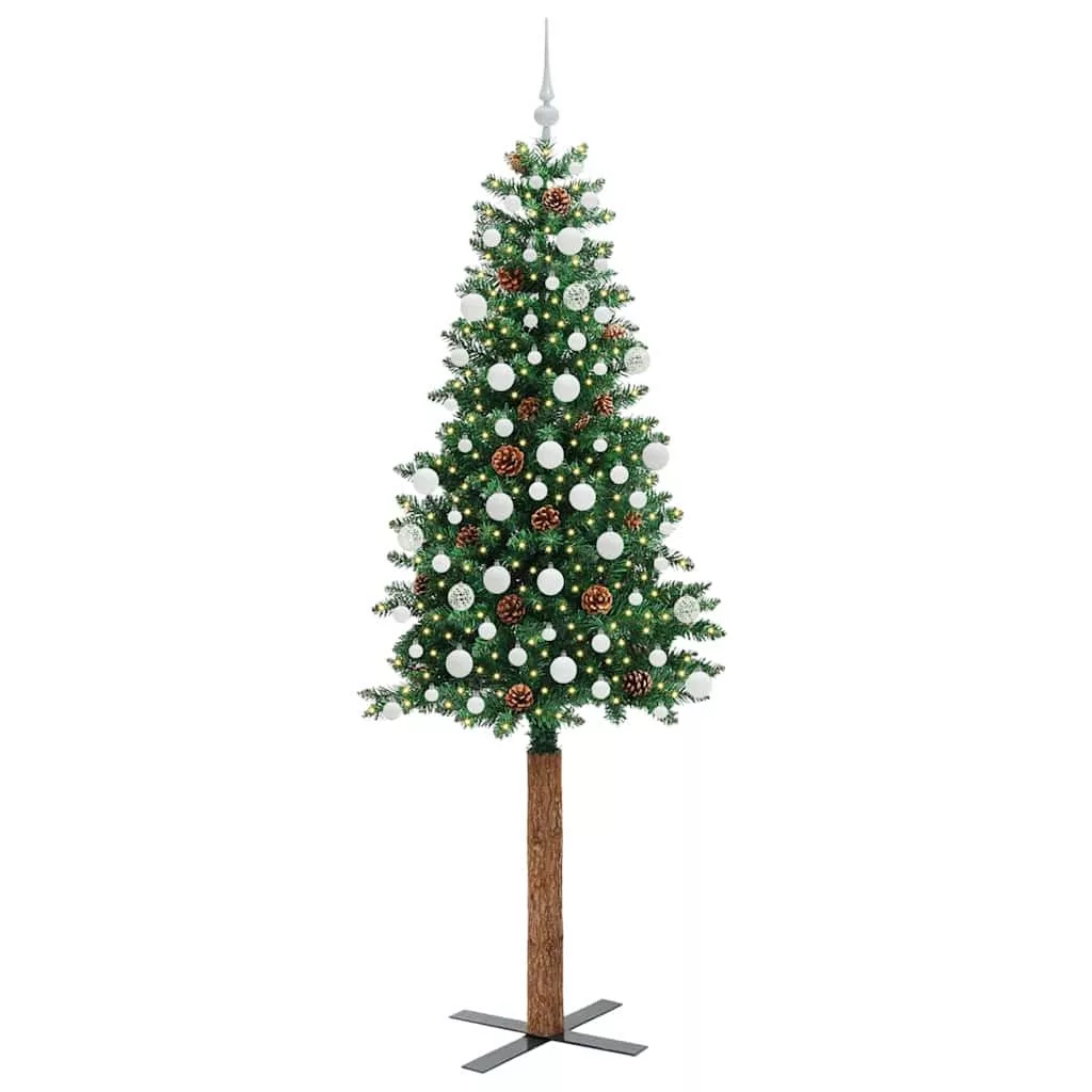 Karcsú karácsonyfa 300 LED-del Zöld 210 cm PVC és tömör fenyőfa