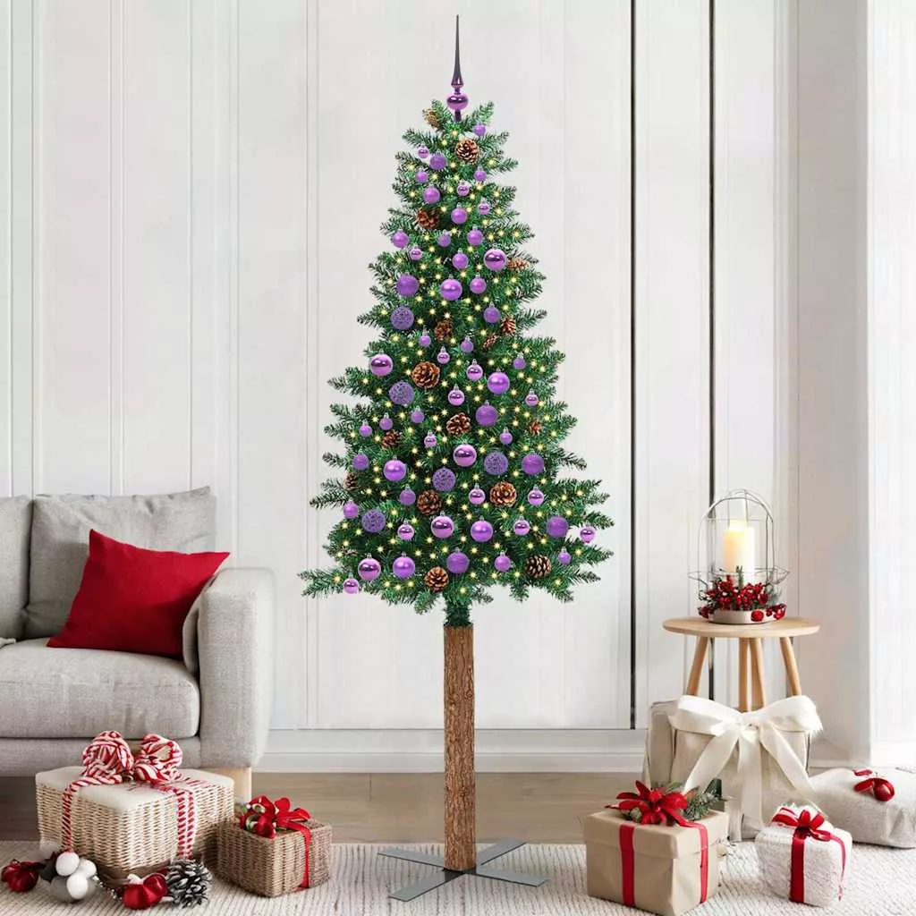 Karcsú karácsonyfa 300 LED-del Zöld 210 cm PVC és tömör fenyőfa