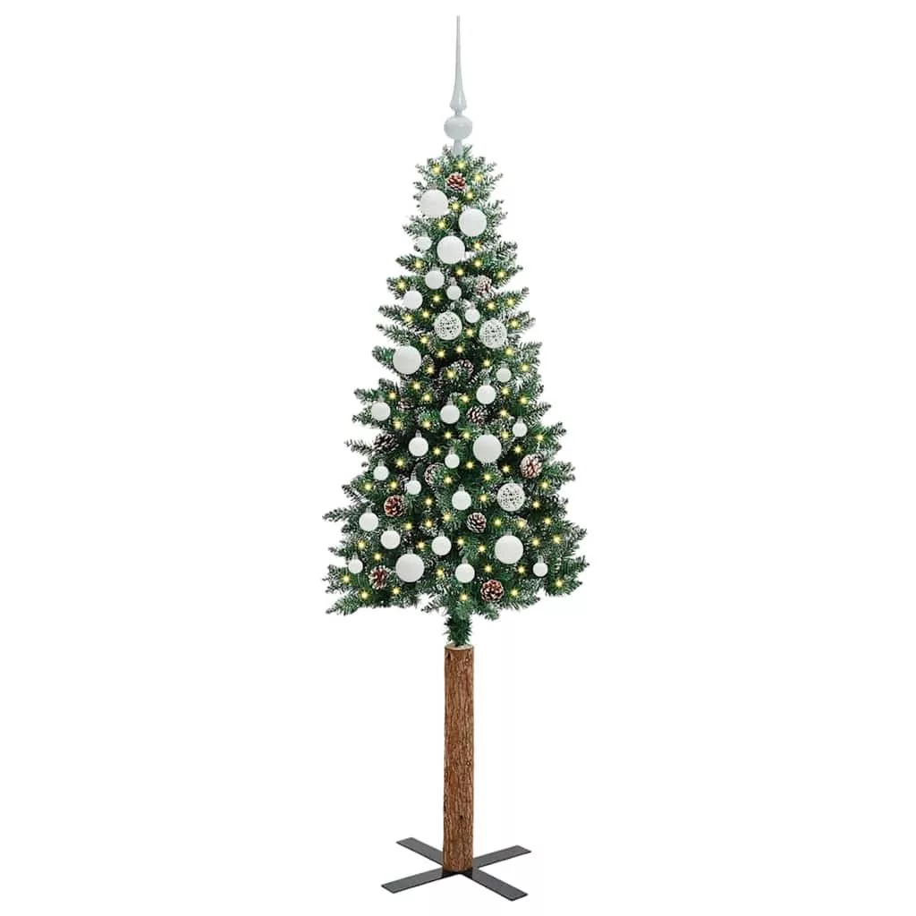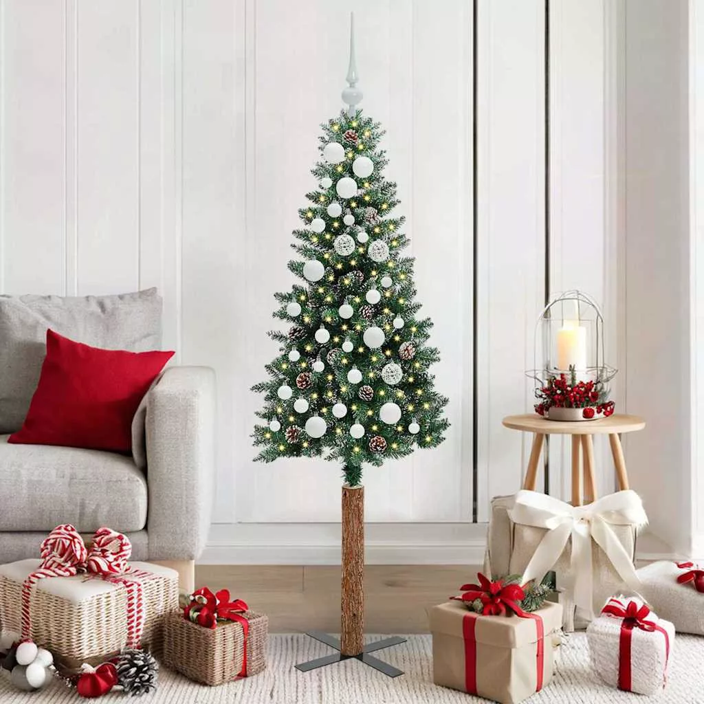 Karcsú karácsonyfa Zöld és Fehér 150 cm PVC és tömör fenyőfa