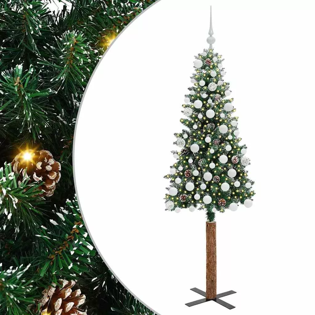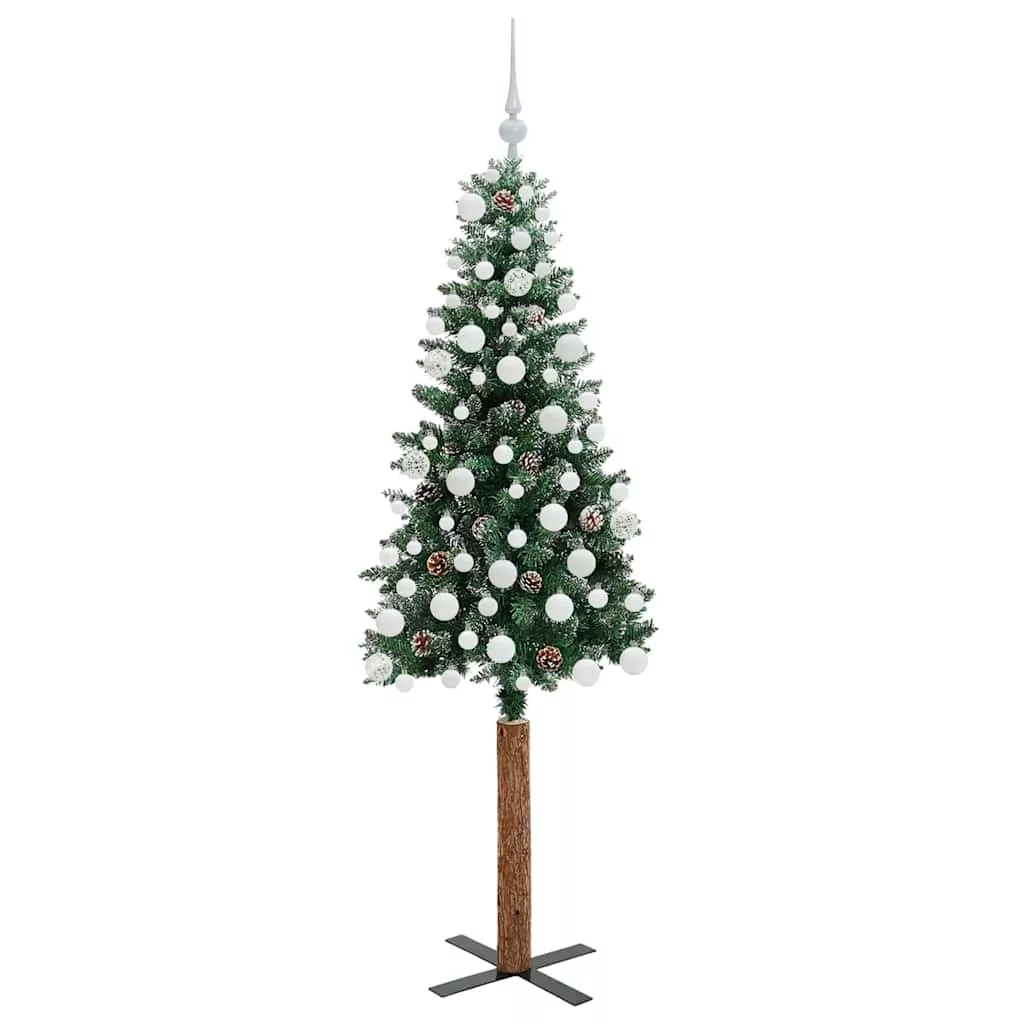 Karcsú karácsonyfa Zöld és Fehér 180 cm PVC és tömör fenyőfa