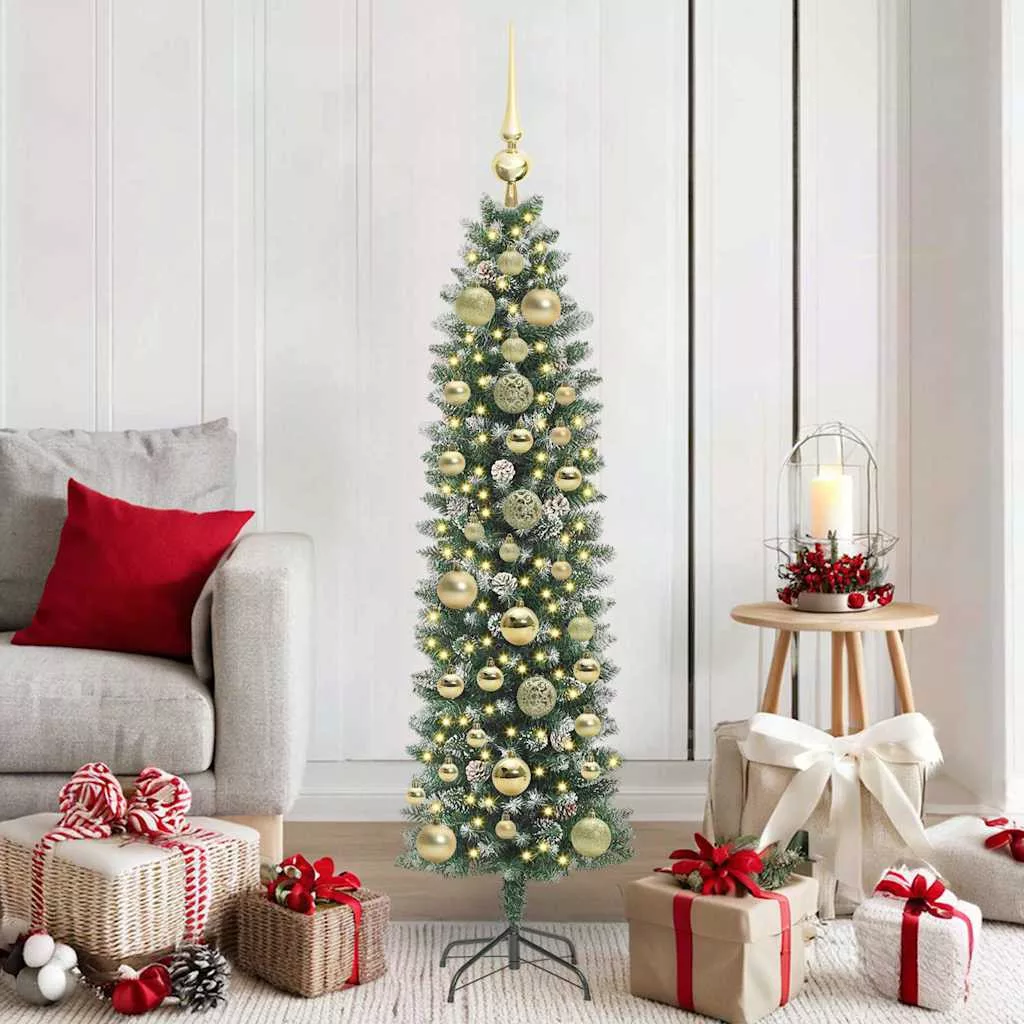 Mű Karcsú Karácsonyi Fa 150 LED-del Zöld és fehér 150 cm