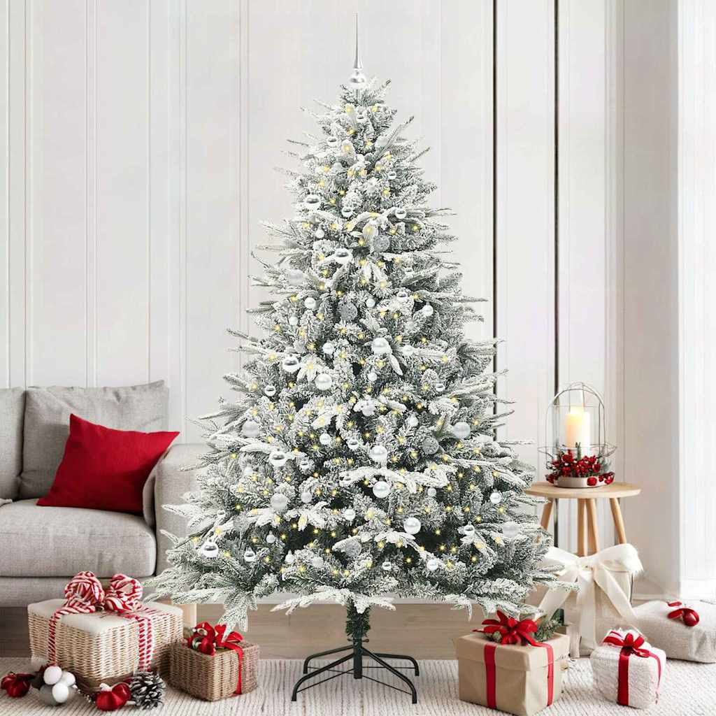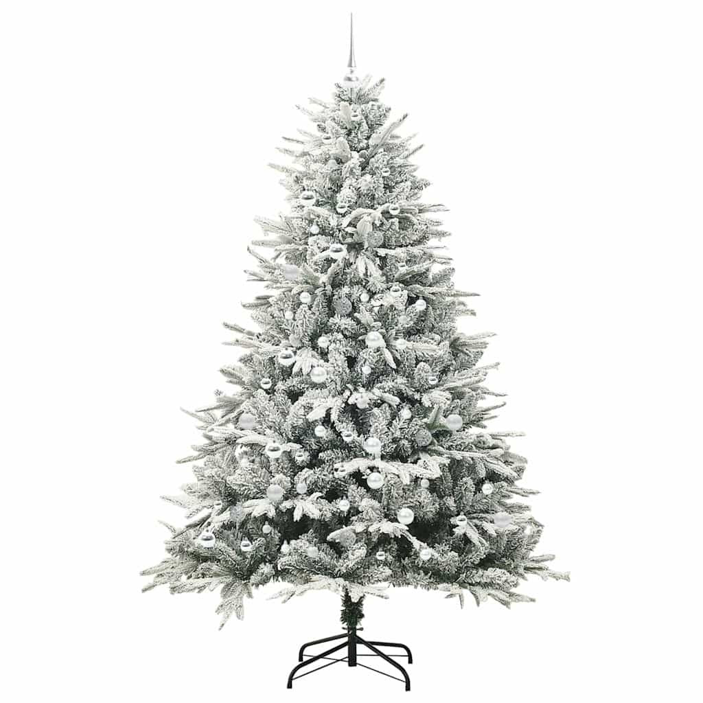 Műfenyő világítással és gömbkészlettel Zöld 210 cm PVC és PE