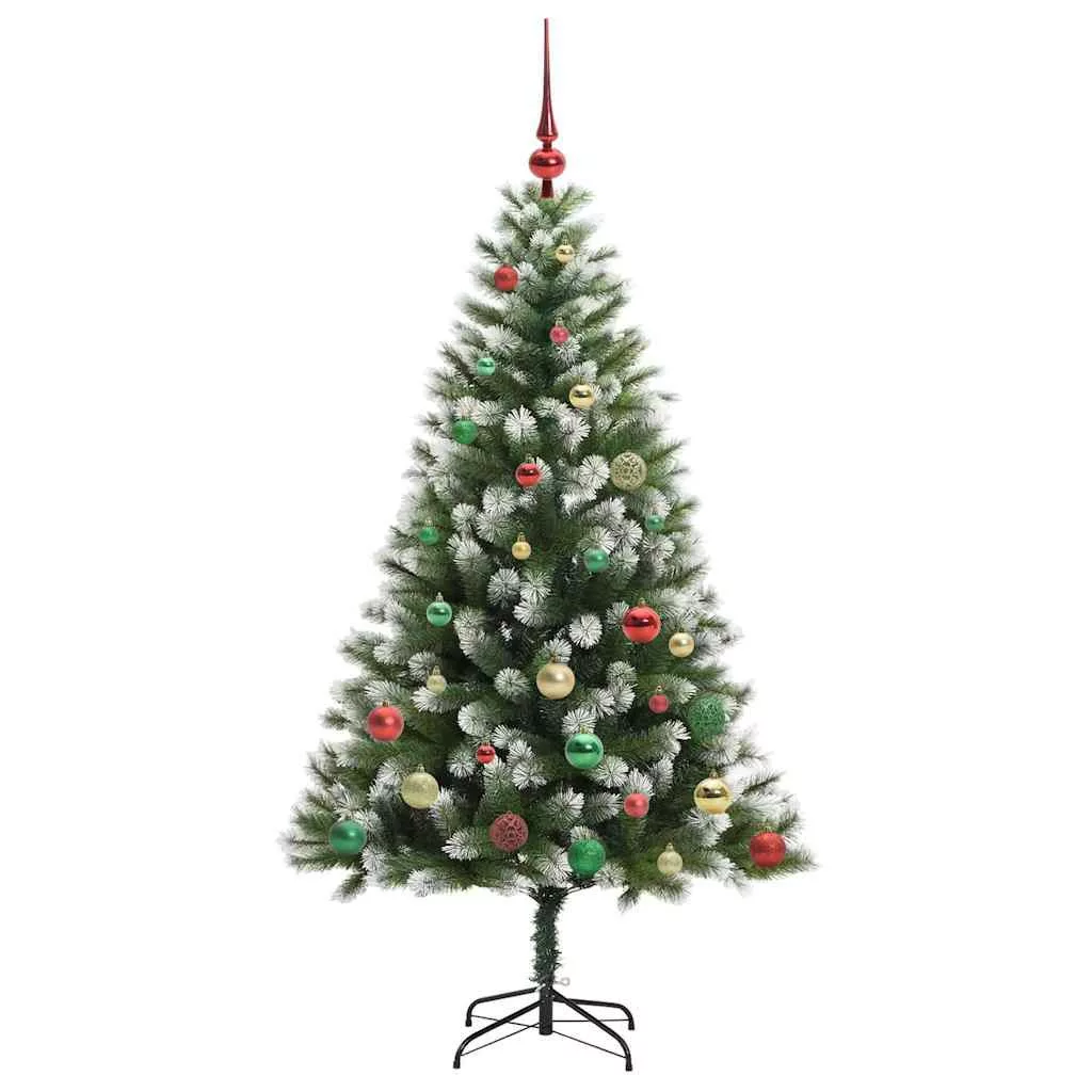 Műanyag csuklós karácsonyfa bolyhos hóval Zöld és fehér 150 cm